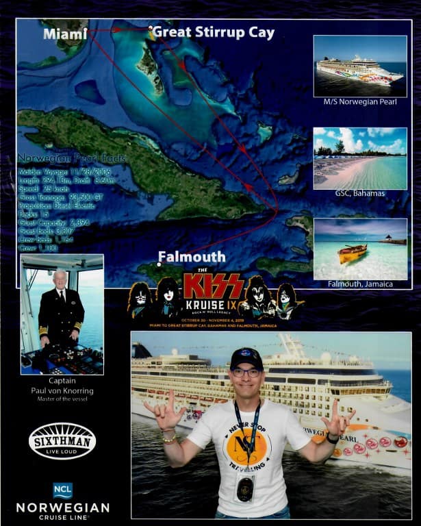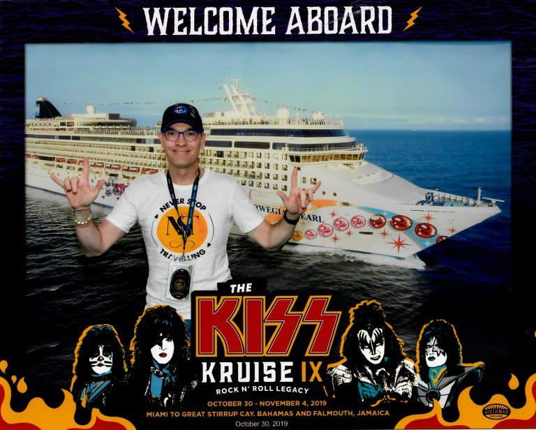 30 oktober 2019, het is zover! We mogen de Norwegian Pearl weer op, vandaag is het vertrek van KISS KRUISE IX. Ook al is het voor mij alweer mijn vijfde Kruise met KISS, blijft het toch mega bijzonder dat je zo’n Kruise samen met je helden aan boord mag beleven. Daarbij zeker ook noemenswaardig dat KISS al 9 jaar op rij, dit Kruisefeestje organiseert! Ik mag me dan ook gelukkig prijzen dat ik voor de vijfde keer de Norwegian Pearl op mag stappen. Alleen Kruise I en VIII waren op een ander schip.