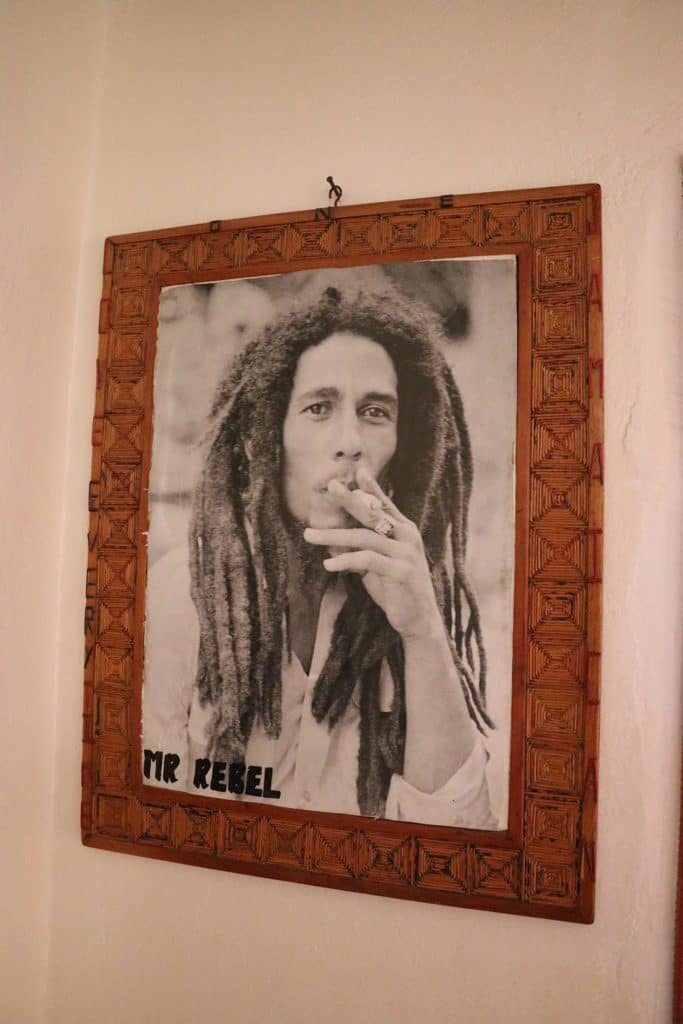 Rondom Nine Miles kun je overal dikke sigaretten en cake kopen. Het is illegaal op het Eiland maar er heerst een soort van gedoogbeleid zoals we dat ook in Nederland kennen. Het is ochtend en m’n mede passagiers slaan het nodige in, ik houd het even op een Bob Marley shot. Het Jamaica glas mag je nadien (natuurlijk) houden, niet voordat je het met een rietje in 1 keer leeggedronken hebt. Laten we het houden op een toeristische traditie. Met opgewarmde keel beginnen we aan de rondleiding door Bob’s geboortehuis, onze gids is zo te horen en te zien ook een fanatieke “roker”, zoals er hier op dit bedevaartsoord wel meer rondlopen. In het “museum” mag gewoon gerookt worden, zal Bob ook wel gedaan hebben. Op zich een leuke ervaring, uiteindelijk ben ik zelf nooit onder de indruk geweest van Bob’s muziek maar kan niet ontkennen dat het zeker een legende is! Legends Never Die, toch?