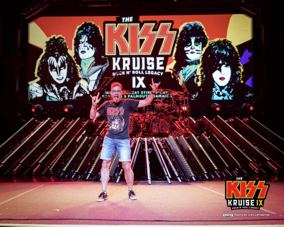 De derde dag van deze thema-cruise is een zeedag, op naar Jamaica. Op zee met een thema-cruise wil niet direct zeggen saai en vervelend. Volop activiteiten. Zo was ik om 10.00 uur al aan de beurt voor mijn KISS stage foto! In het verleden kon elke KISS Kruiser op de foto met KISS maar dat is inmiddels achterwege gelaten en hiervoor in de plaats is de foto op het KISS podium gekomen. Deze ochtend is er ook een signing-session gepland, hier zijn alle bands op de Kruise aanwezig m.u.v. KISS. Mijn belangrijkste doel is een handtekening van Bruce op mijn 1988-2017 foto te herkrijgen en deze missie is geslaagd. Daarbij even met Brent bijgepraat over zijn GSB avontuur en natuurlijk met Todd Kerns even opnieuw kennis gemaakt. Todd neemt de zang en slaggitaar voor zijn rekening in Bruce’s band maar is tevens ook de bassist van Slash. Geen onbekende in het circuit dus. Dan hebben we deze dag nog de Masterclass Art and Painting met Paul Stanley, hierin neemt Paul een aantal Kruisers mee in zijn avontuur als kunstenaar. Natuurlijk beantwoord Paul de nodige vragen uit het publiek. Een leuke sessie, wat mij betreft beter dan de “pizza-sessies” uit voorgaande jaren. Ook Doc McGhee (Management van KISS) komt vandaag aan het woord in zijn “Ask Doc”. Leuke verhalen, altijd interessant wat Doc ons weet te melden. Goed te horen ook dat het KISS-Legioen echt wezenlijk verschilt van de fans van vele andere bands. Het gaat om connecties en niet hoe goed en leuk iemand zijn gitaar vast kan houden……..