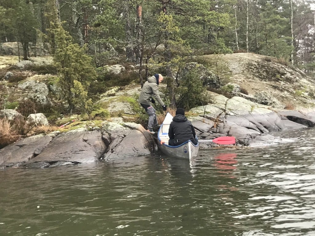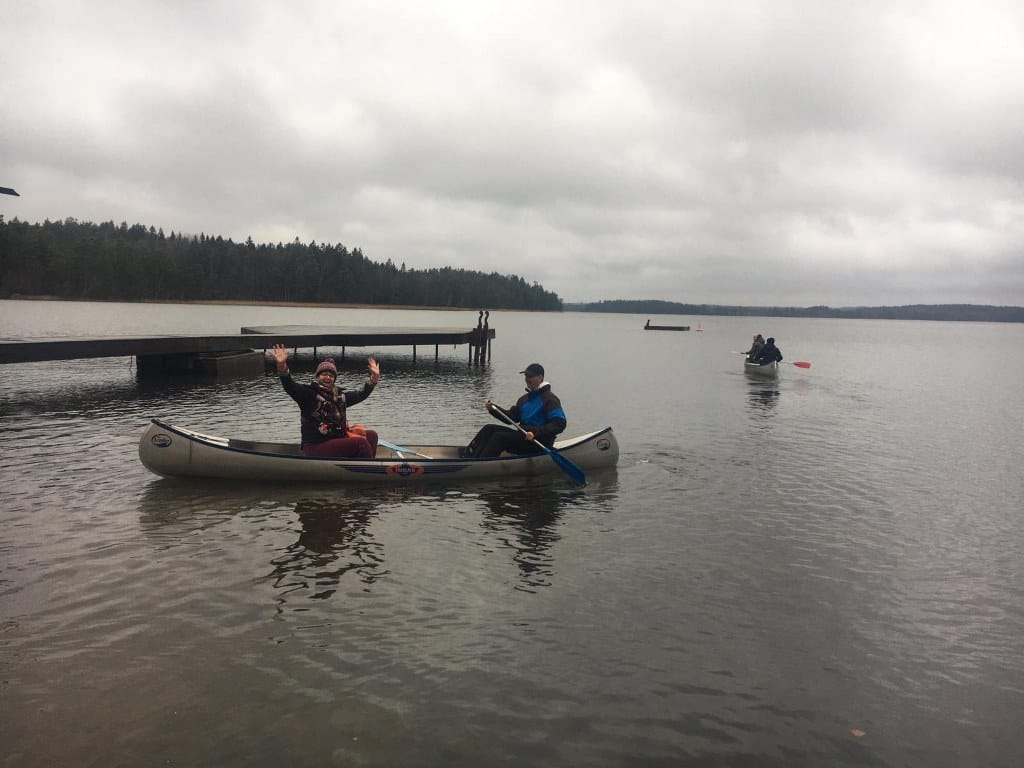 Aan het meer op het terrein van Rockelstad liggen aan het meer kano’s voor ons klaar. Daarmee is het leuk om het meer verder te onderzoeken en naar het eiland te varen.