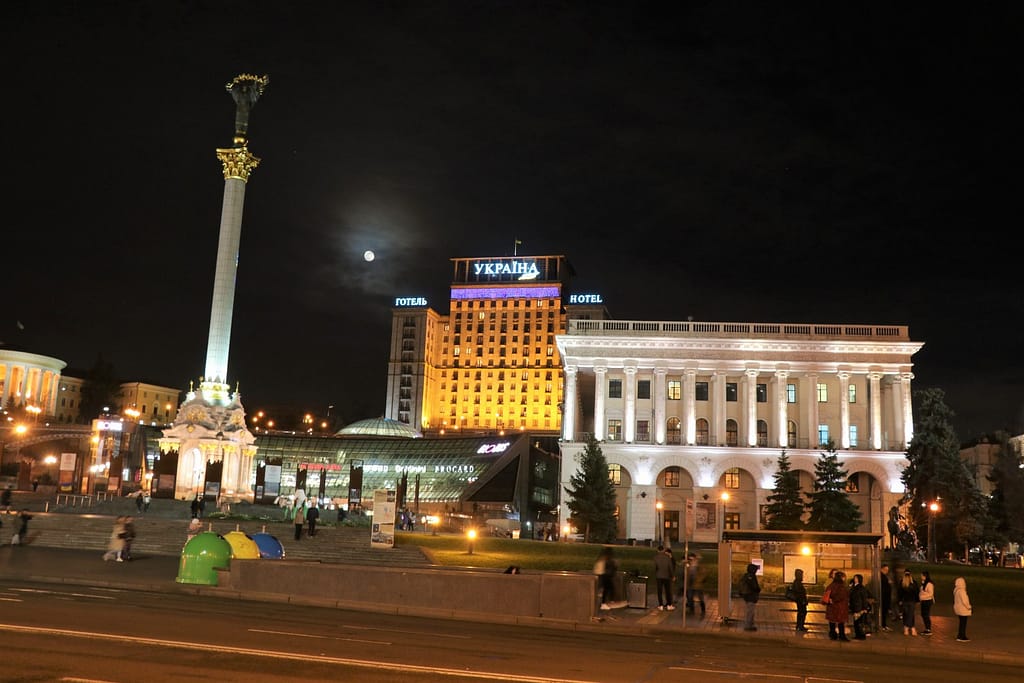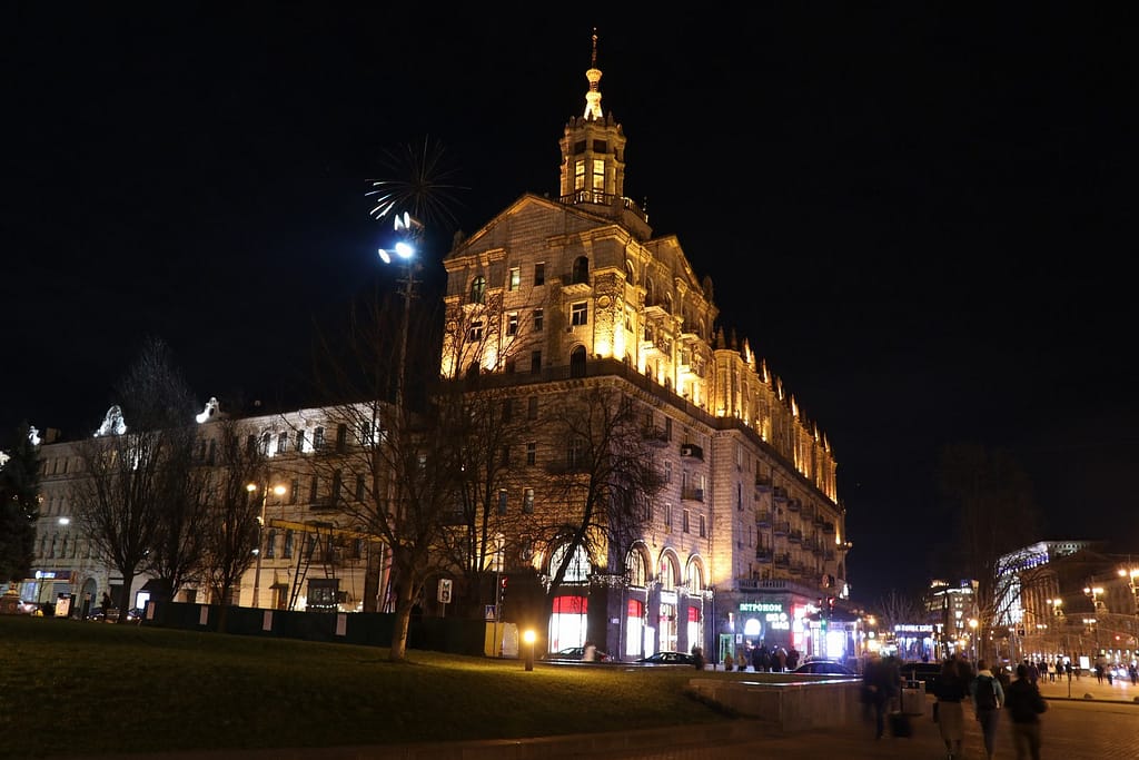 Ook in de avonduren is het onafhankelijkheidsplein een lust voor de ogen. Ons bezoek aan Kiev vond plaats in maart, de avonden en nachten zijn dan nog koud maar in de zomermaanden is hier volop beleving met straatmuzikanten e.d.