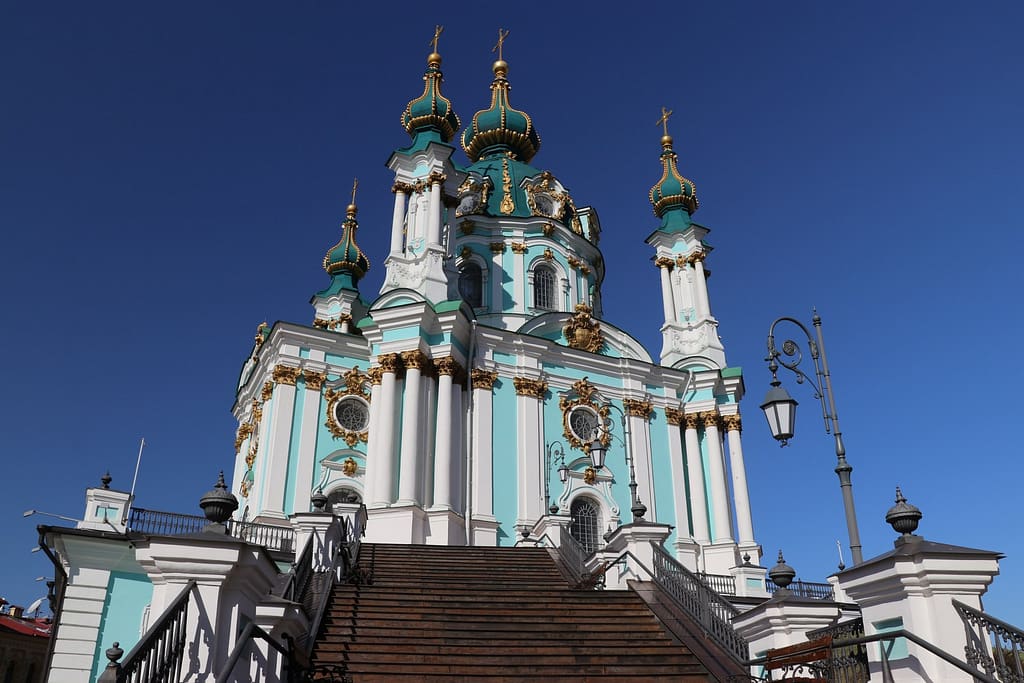 Never Stop Travelling is voorstander van stedentrips in combinatie met een dagje fietsen. Kiev is niet de meest ideale stad om te fietsen, veel slechte wegen en bijna nergens vlak. Daarbij zijn de voorzieningen voor fietsers beperkt en de wegen overal, zeker van maandag t/m vrijdag. Beter om wat extra te wandelen, dus op pad met de benenwagen. We wandelen, berg-op, naar de Sint-Andreaskerk die prachtig ligt op de een van de heuvels van de stad, vanaf hier heb je een adembenemend uitzicht over de stad. De kerk werd gebouwd tussen 1747 en 1754. De weg naar de kerk is stijl en voorzien van klinkers, een pittige wandeltochtje wat je zeker moet beleven. Vele winkeltjes, straatverkoop van kunst tot souvenirs bevinden zich op de weg naar de kerk. Gezellig en leuk!