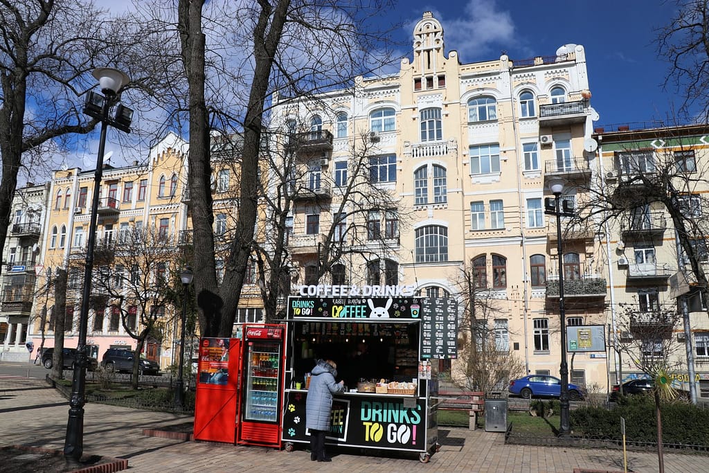 Wat zomer en winter gewoon doorgaat zijn de kleine kraampjes met hapjes, koffie en thee op straat. Die staan overal in de stad verspreid. Dus aan koffie en versnaperingen kom je hier echt niets te kort. Daarbij kent Kiev vele goede restaurants, eetcafe’s en barretjes. Wij hebben er vele getest en hebben overal prima kunnen eten en drinken. Wat zeker ook vermeldenswaardig is dat de Oekraïnse biertjes goed van smaak zijn. Proost! Let wel op: Het lijken hier wel Amerikaanse praktijken want als je je voorgerecht nauwelijks op tafel hebt staan, staat het hoofdgerecht er al langs. Goed om even aan te geven bij de bediening dat je een pauze wilt tussen je voor- en hoofdgerecht! Prijzen liggen hier aanzienlijk lager dan in Nederland, ook in hartje centrum. In de horeca wordt redelijk Engels gesproken en wordt je op een vriendelijke manier geholpen door de in de regel wat stug uitziende Oekraïense bevolking.