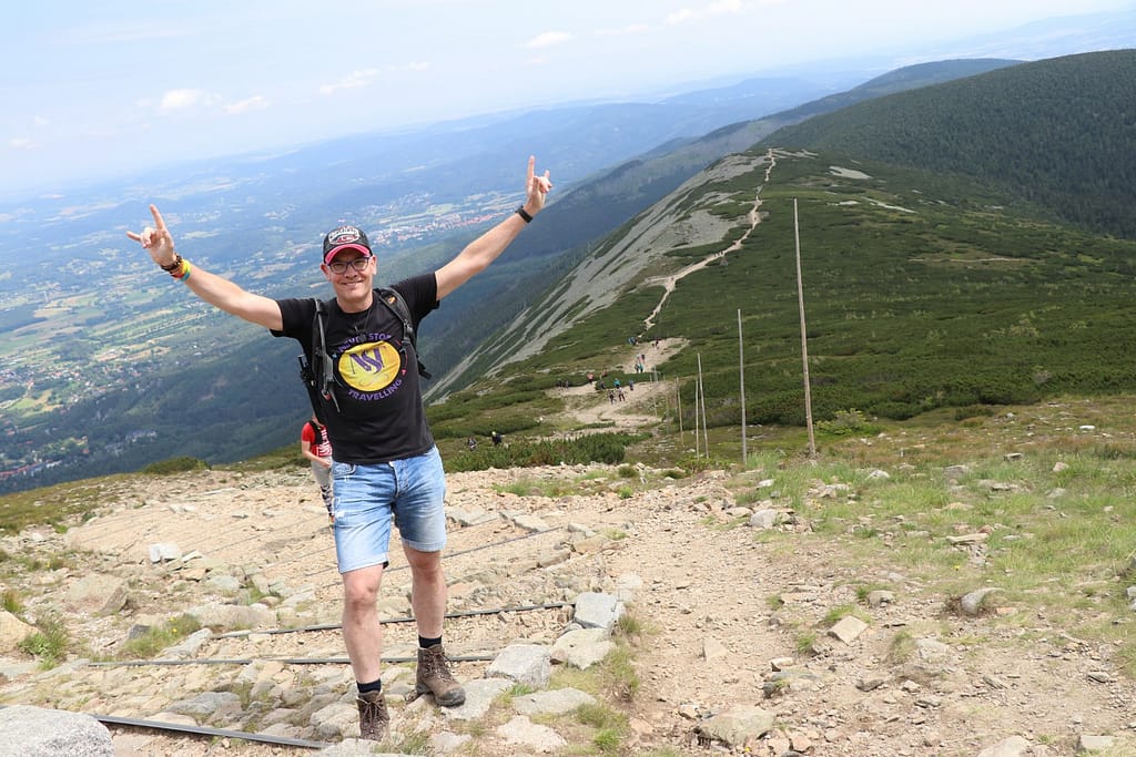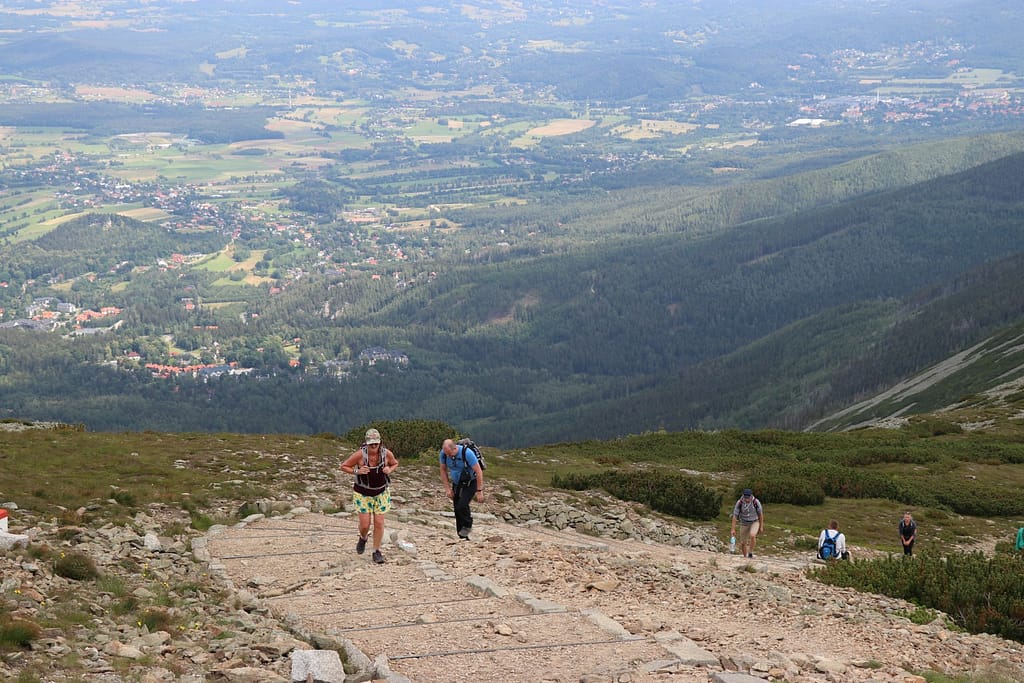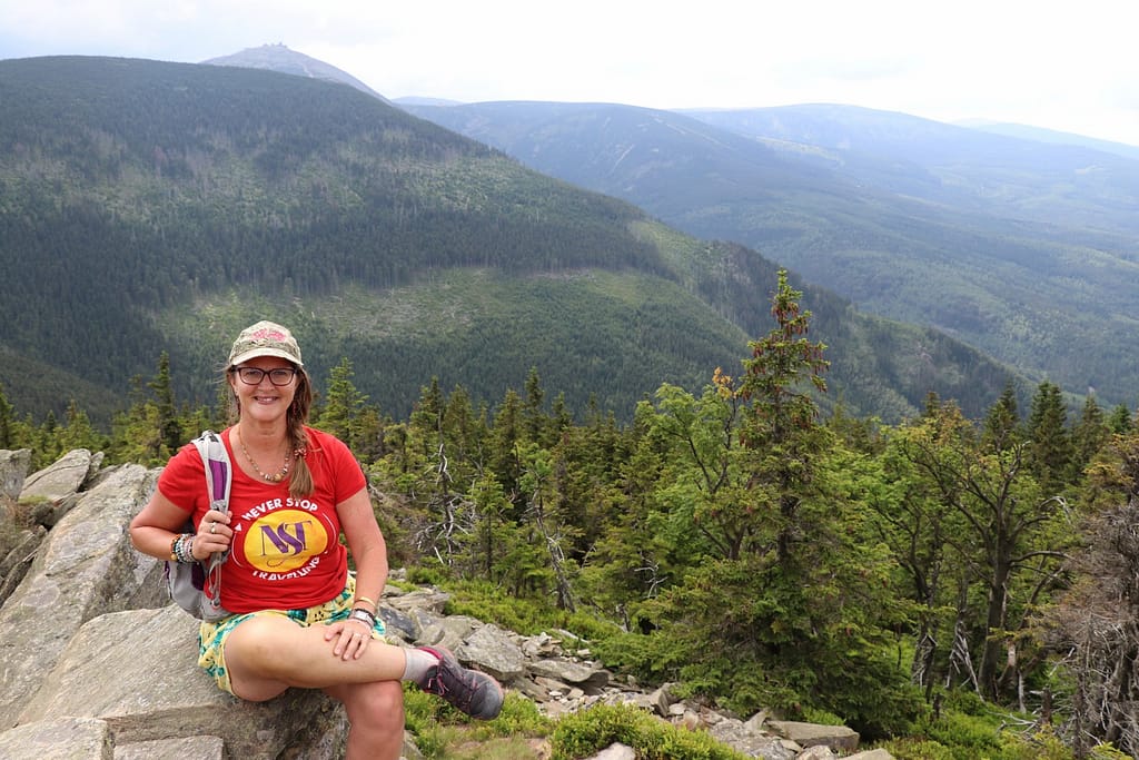 Vandaag naar Horní Malá Úpa met de auto, een wandeling  naar het hoogste punt in Tsjechië, de Snézka oftewel sneeuwkop.  Een pittige maar mooie wandeling. Als je vertrekt vanuit Pee pad Snezkou kun je een deel of het hele traject kan ook met de lift worden afleggen. Vanuit hier vertrekken de meeste mensen, dus kan het druk zijn. Vanuit Horní Malá Úpa is het minder druk, vanuit daar zijn er ook diverse mogelijkheden naar de top. Belangrijk! Check voor vertrek de weersvoorspellingen  in de bergen, bij slechte weersomstandigheden gaat de lift niet en is het verstandig om de wandeling op een andere dag te doen. Met eigen vervoer naar Pee pad Snèzkou of naar Horní Malá Úpa, op beide locaties zijn voldoende parkeergelegenheden. Wel een betaalde parkeerplaats nemen want van “wild parkeren” zijn ze in Tsjechië niet zo gediend. Voor 100 kronen staat je auto een dagje goed en veilig geparkeerd. Vanuit de parkeerplaats kun je direct de rode oppakken naar de top. Als je de rode markeringen volgt ben je in 2,5 uur boven, althans de markeringen. Wij stonden in 1 uur en 48 minuten op de top, eerlijk is eerlijk, nat van het zweet en redelijk buiten adem. De wandelpaden zijn goed en duidelijk gemarkeerd maar het is een pittig stukkie. Na 4 km heb je nog een hut waar je een stop kunt maken voor een hapje en drankje.