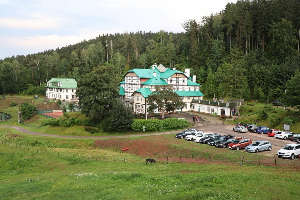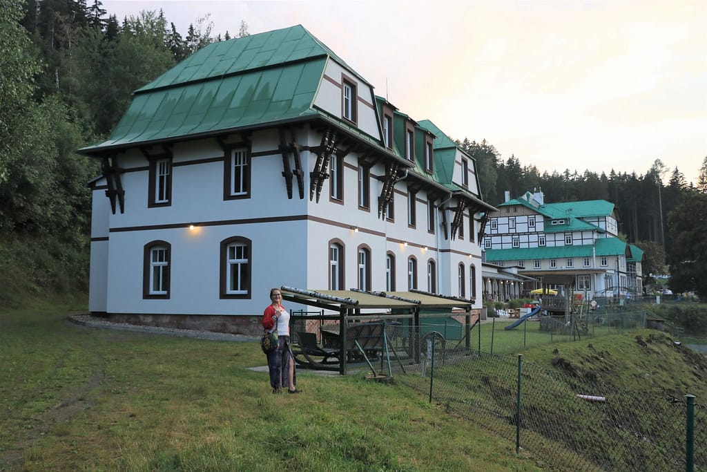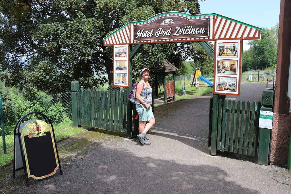 Laat in de middag arriveren we bij ons verblijf in Tsjechië voor onze wandeltrip Hotel Pod Zvičinou, van waaruit we de komende acht dagen onze wandeltochten gaan maken! Een schitterend en afgelegen locatie. Was vroeger een overheidsgebouw, na onderhoudsstilstand van ruim 40 jaar is het gehele gebouw opgekocht door een Nederlands echtpaar. Je kunt hier dus Nederlands praten, althans bij aanmelden want niet iedereen spreekt hier natuurlijk Nederlands. Na het opkopen kon de renovatie beginnen, je kunt niet ontkennen dat het gebouw wat ouder is echter de locatie ligt prachtig en is voorzien van ruime kamers. Wij liggen in een van de vier villa’s, die iets ruimer zijn dan de hotelkamers. De lichte meerprijs meer dan waard. Verder zijn er nog een tweetal bungalows beschikbaar voor families en diverse trekkershutten, die eenvoudig zijn uitgevoerd. Restaurant en alle faciliteiten zijn goed voorzien, hier kom je niets te kort! Vakantiegenot! Wil je nog even een gebedje schieten, dat kan in het op het terrein liggende kapelletje. Corona is kennelijk in deze regio al vanaf eind mei geen issue meer, dus de “corona-regels” lijken hier nooit bestaan te hebben maar ook hier is alles bijna drie maanden dicht geweest.