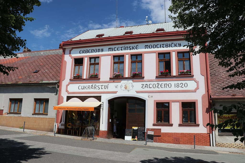 Miletin heeft haar eigen bier, Pytlak genaamd, en is alleen verkrijgbaar in Miletin. Het is hier in de zomermaanden goed toeven. Een lunch kunt je gebruiken in het restaurant Sousedsky Oûm, oftewel huis van de buren ook gelegen aan het plein. De Miletinske modlitbicky, een soort peperkoek met jam is bekend in heel Tsjechië en alleen te verkrijgen bij de patisserie Erben, ook op het plein. De eigenares kent geen woord Duits of Engels maar gelukkig krijgen we bijval van twee meiden die een beetje Engels kennen. Uiteindelijk kunnen we gaan smullen!