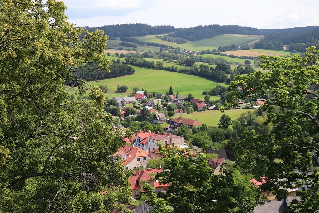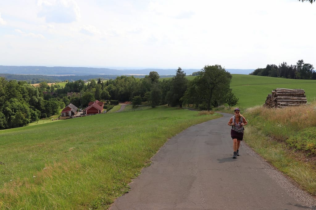 We lopen deze dag door weilanden en schitterende bospaden, continu op en neer. Vlak terrein is hier geen te bekennen. Deze omgeving, maar dat geldt voor heel Tsjechië, is een paradijs voor wandelaars. Onderweg zien we nog een tweetal reeën schrikken van ons. Wildlife! We passeren leuke dorpjes waar de tijd stil lijkt te hebben gestaan. Lunch doen we bij de lokale bakker, waar de koffie al een stuk beter is.