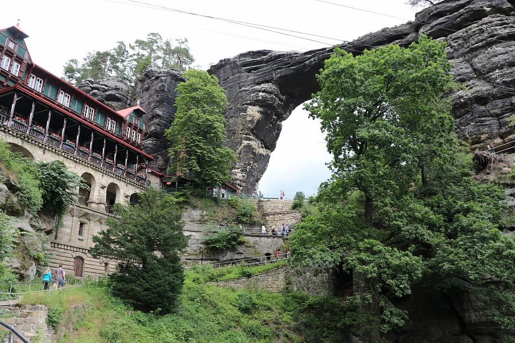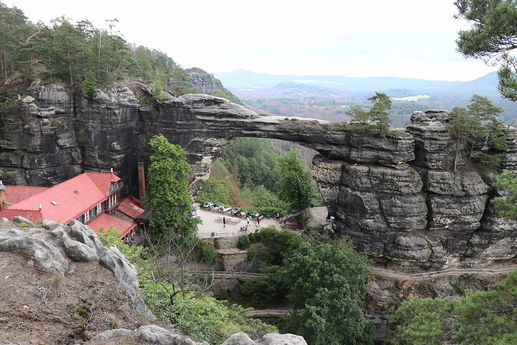 Direct na de grensovergang rijdt je het schitterende en toeristische plaatsje Hrensko binnen. Volop vertier is hier te vinden, hotels, restaurants en zeker een groot aantal bezienswaardigheden. Er is een schitterende Klamm aanwezig, die wij niet hebben bezocht, kennelijk echt wel de moeite waard is. Wij zijn op doorreis en onze tijd is enigszins beperkt dus we besluiten de Pravčická brána te bezoeken. Een kalkzandsteen formatie met een gigantisch gat er in.