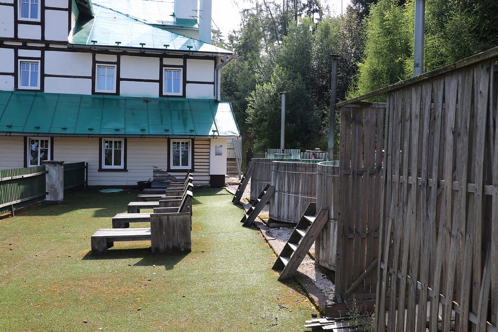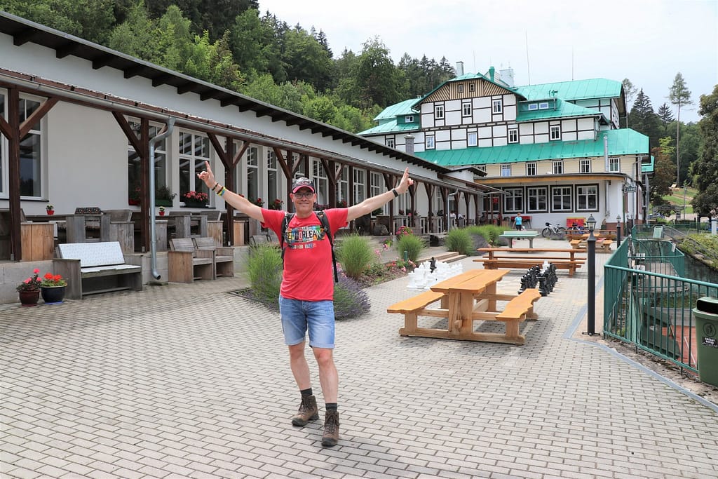 Dikke 12 km op de teller, schitterend gewandeld! Even in de hottube (hout gestookt) van ons hotel zou welkom zijn, helaas zijn die alleen in de wintermaanden gevuld en bruikbaar. Tijd voor een douche en relaxtijd. Genieten in Tsjechië!