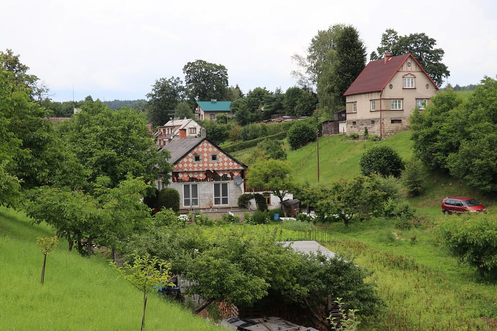 Vanaf dit mooie plaatsje is het nog zo’n 9 km wandelen terug naar ons verblijf. Veel fruitbomen hier, langs de weg, in fruitgaarden en/of op eigen terrein. Leuk is dat in Tsjechië het fruit voor iedereen is. Dus je kunt onderweg plukken en eten!
