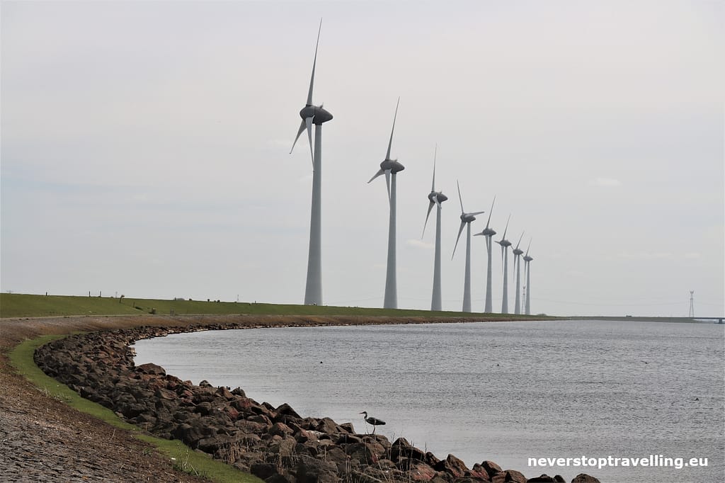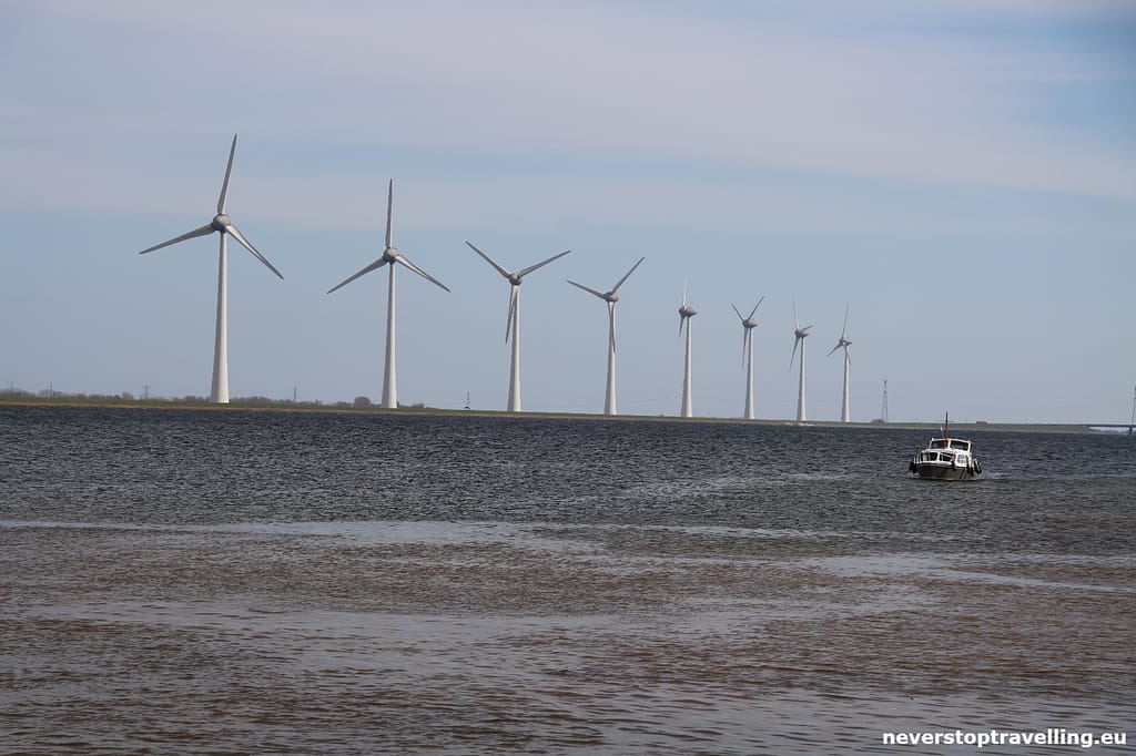 Vanuit deze plaats heb je een fantastisch uitzicht over het IJsselmeer en het daar gelegen windmolenpark.