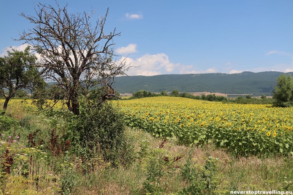 Je blijft hier rijden tussen prachtige landschappen en ziet al snel dat Bulgaren niet zoveel waarde hechten aan hun tuin en het afwerken van hun huizen, de tijd heeft hier wel even stilgestaan, ook qua brandstofprijzen. Oude fabrieken, tankstations e.d. die niet meer in gebruik zijn worden ook niet verwijderd maar overvallen door moeder natuur. Wij kennen dit soort beelden niet echt, terwijl ze in Bulgarije eerder regel dan uitzondering zijn. Je ziet echt grote verschillen tussen de toeristische kustlijn en het binnenland.