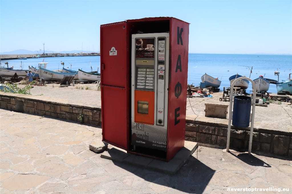 Pomorie (Bulgaars: Поморие) is een stad in het zuidoosten van Bulgarije, gelegen op een nauw schiereiland in de baai van Boergas. De stad behoort tot de 20 grootste plaatsen in de Zwarte Zee Euregio. Pomorie ligt zo’n 20 kilometer van Boergas. Pomorie werd mogelijk in de 4e of 5e eeuw v.Chr. gesticht door de Oude Grieken, als kolonie van Apollonia (het huidige Sozopol). In 1934 kreeg de stad zijn huidige naam, afgeleid van het Bulgaarse “po-” (nabij) en “more” (zee). Pomorie is vandaag de dag een belangrijke toeristische attractie. De stad telt zo’n 14.000 inwoners. Ook hier zijn diverse goede hotels en resorts aanwezig voor een prachtige “zwarte zee vakantie”. Wij gebruiken Promorie als tussenstop op onze weg naar Nessebar. Leuk detail is dat de Bulgaren veel “automaat koffie” drinken op straat, overal tref je koffie automaten aan op straat. Niet een maar tientallen, erg bijzonder!