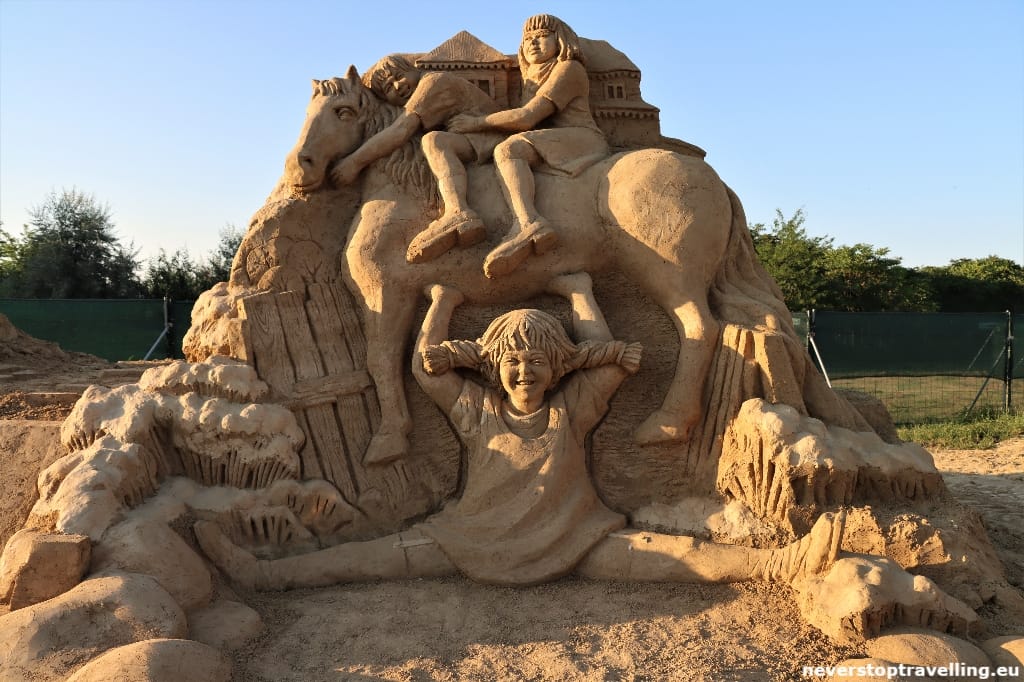 In het Boergas Park (Ezero) wordt elk jaar in de zomermaanden een kleine stad gebouwd van zandfiguren. Hiervoor wordt jaarlijks ruim 2.500 ton zand gebruikt. Schitterende zandformaties die in de avonduren mooi worden aangelicht door de ondergaande zon. Het zandfestijn is dagelijks open vanaf 18.00 uur en met een entreeprijs van ongeveer €1,75 p.p. mag je dit niet missen. Trek hiervoor een half uur tot een uur uit en je hebt voldoende tijd om deze prachtwerken goed te bekijken. Mooi stukje (kunst) werk!