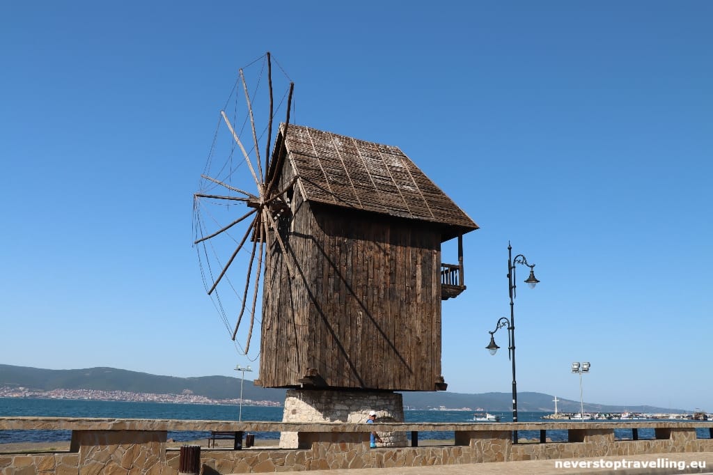 Nessebar (Bulgaars: Несебър Nesebǎr) is een stad en een gemeente in het oosten van Bulgarije in de oblast Boergas. Ze telt ruim 13.000 inwoners. Het historische deel van de stad is gelegen op een klein schiereiland aan de Zwarte Zee. Nessebar staat op de Werelderfgoedlijst van de UNESCO. Je auto parkeer je op een van de parkeerplaatsen in het nieuwe gedeelte van Nessebar, je loopt dan via de oude houten windmolen naar het oude gedeelte van de stad. De windmolen is iconisch werkstuk die op de scheiding staat van het oude en nieuwe gedeelte. Een fotogenieke molen! Nabij de molen heb je prachtige vergezichten over de zee.