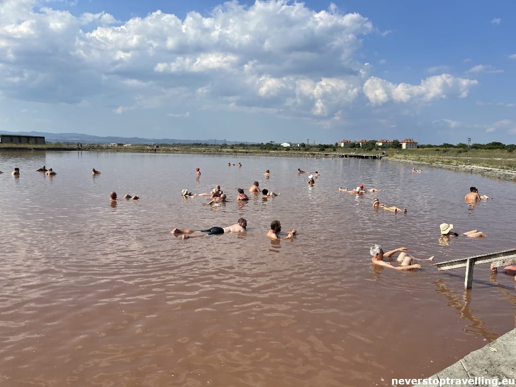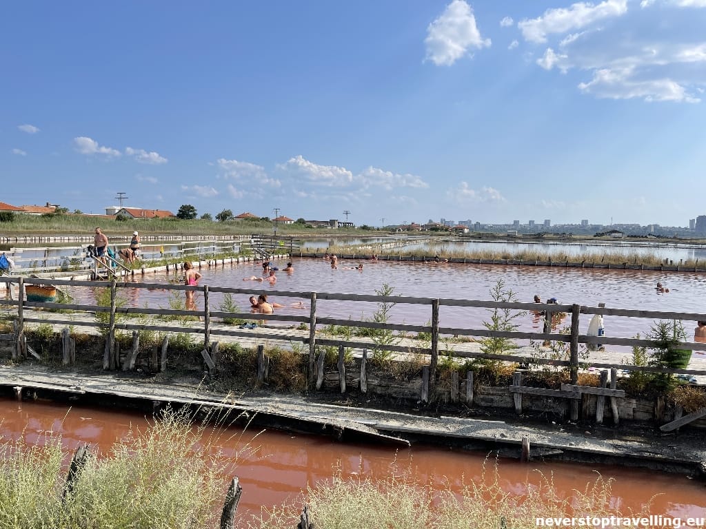 In het zuidelijke gedeelte van het Atanasovsko meet vind het grootste “outdoor SPA centre” van Bulgarije. Voor 2 lev (is ongeveer € 1,00) ga je naar binnen. Als eerste ga je 20 minuten in een van de zoutbaden liggen, die zijn zo zout dat je gewoon blijft drijven. In de zomermaanden zijn deze baden erg warm dus van verkoeling is hier geen sprake. Na het zoutbad kan het insmeren beginnen, de zwarte modder van de zwarte zee heeft een bewezen helende werking! Geheel op laten drogen totdat je je huid voelt trekken en dan aan de andere zijde van de weg, de zee in, ontzwarten… Nabij deze “SPA” tref je ook een hapje en drankje aan dus mochten de “behandeling” wat dorst en/of honger opgeleverd hebben dan kun je dat aanvullen. Vanuit Boergas centrum kun je te voet maar is wel ruim een uur wandelen, er rijdt een treintje vanuit het Zeepark, waarmee je snel en eenvoudig bij de zoutbaden bent. Met de auto rijd je een stukje om vanuit het centrum, er zijn voldoende parkeerplaatsen.