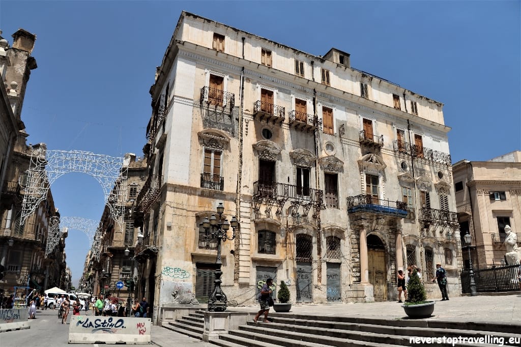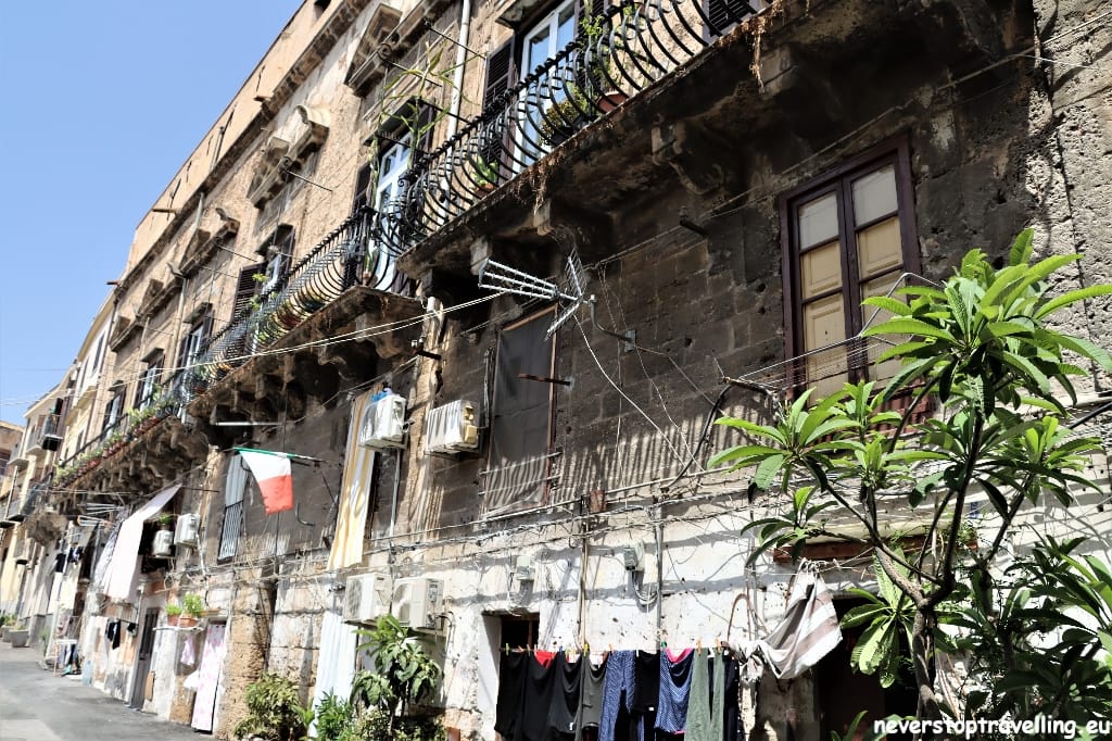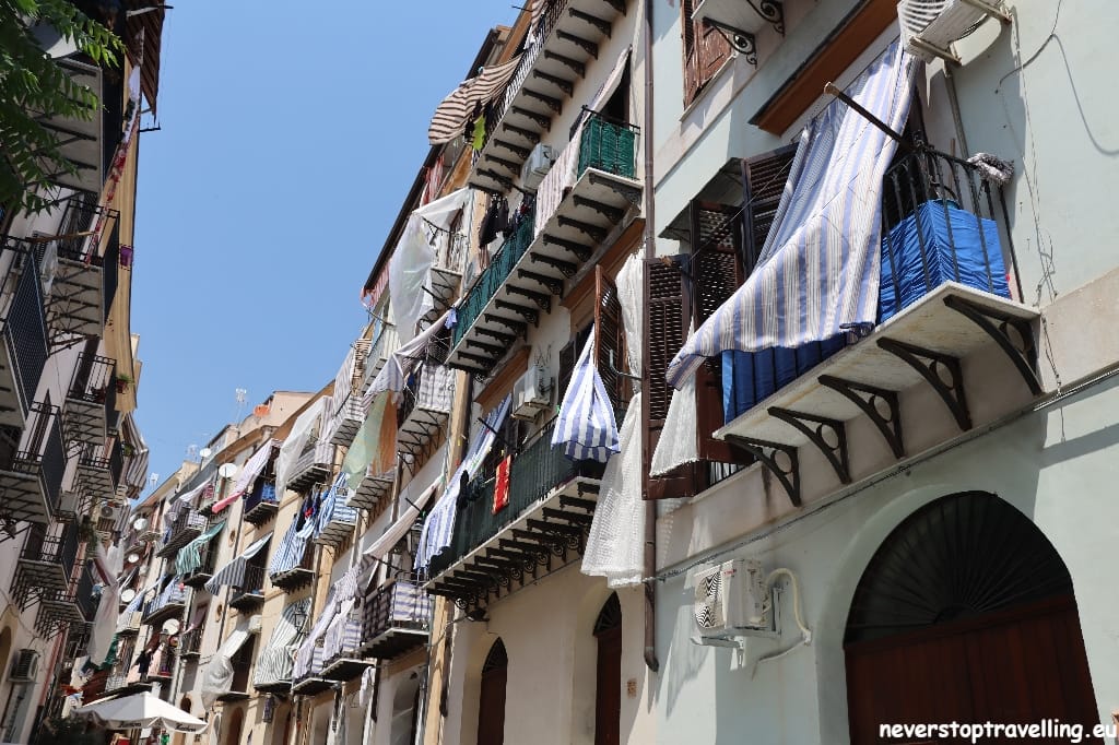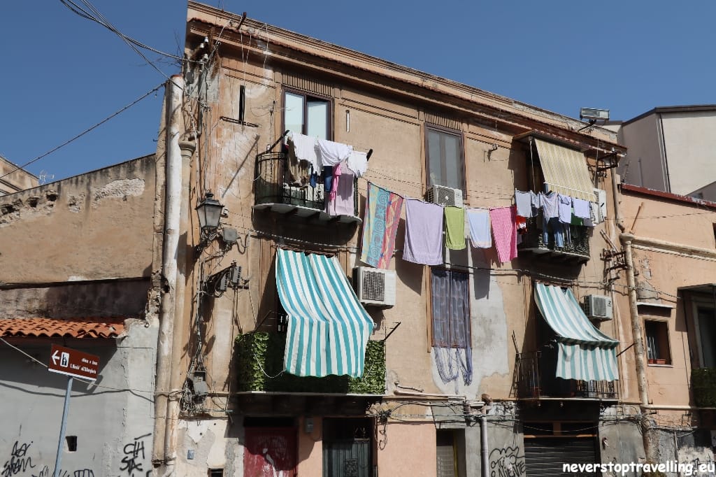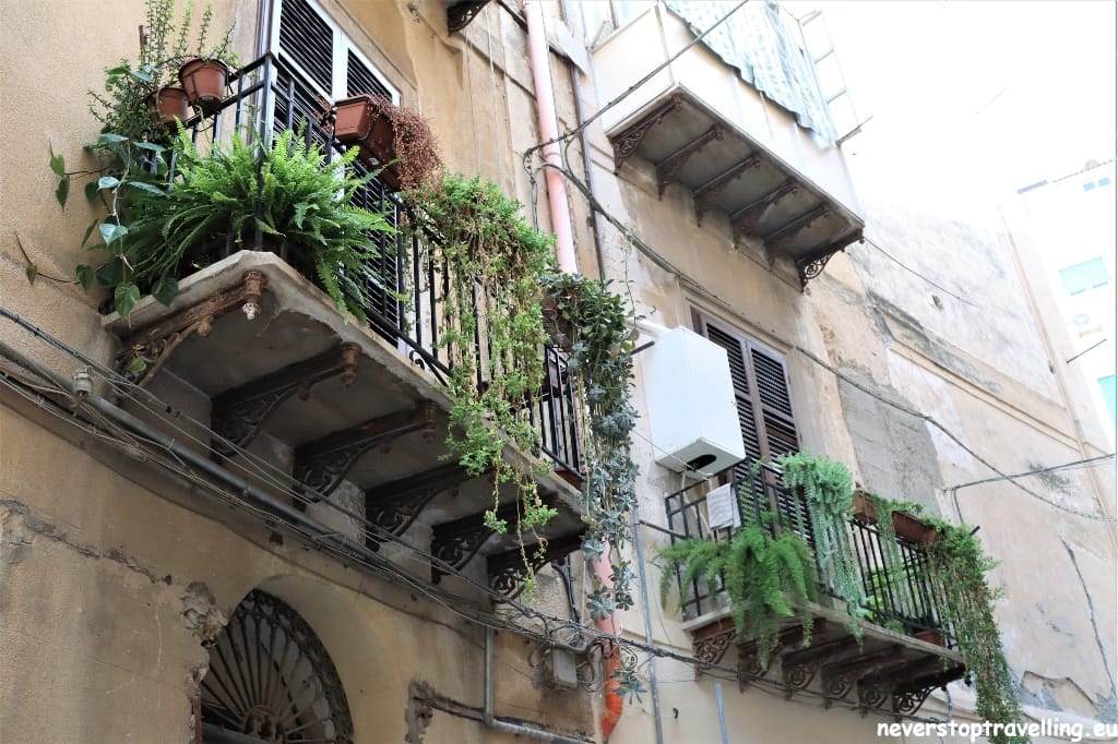 Wat erg opvalt in de stad zijn de stijl van de vele oude gebouwen, erg leuk is te zien hoe iedereen het balkon in heeft gericht. Een voor- en achtertuin zoals wij die kennen, is voor de meeste Sicilianen niet gegeven. Dan is het nog zo dat de vier Palermo-districten qua “luxe” en dus woonlasten ook nogal van elkaar verschillen.