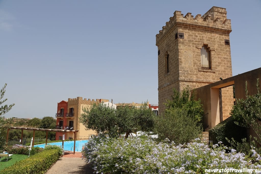 Een Baglio is een typisch West-Sicilië huis met een plein in het midden, omringt door gebouwen. Dit hotel is een antieke Baglio met een uitkijktoren en is gebouwd tussen 1313 en 1341. Destijds gebouwd om aanvallen van piraten uit Noord-Afrika te verdedigen.
