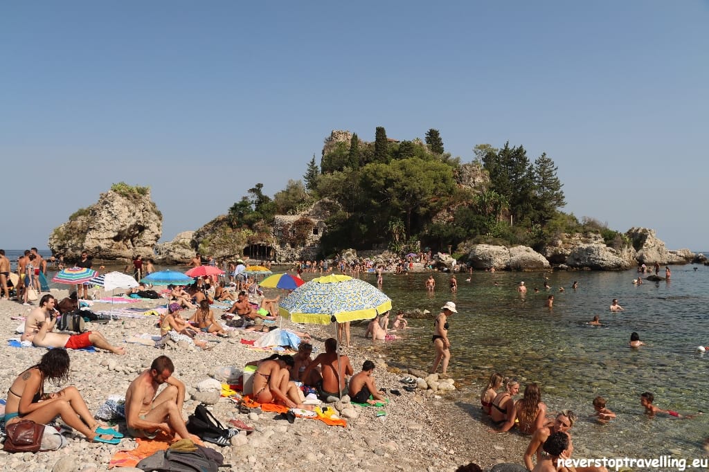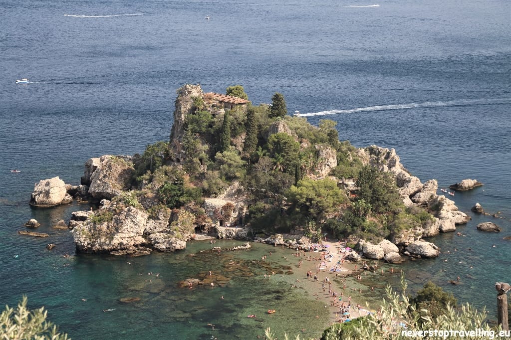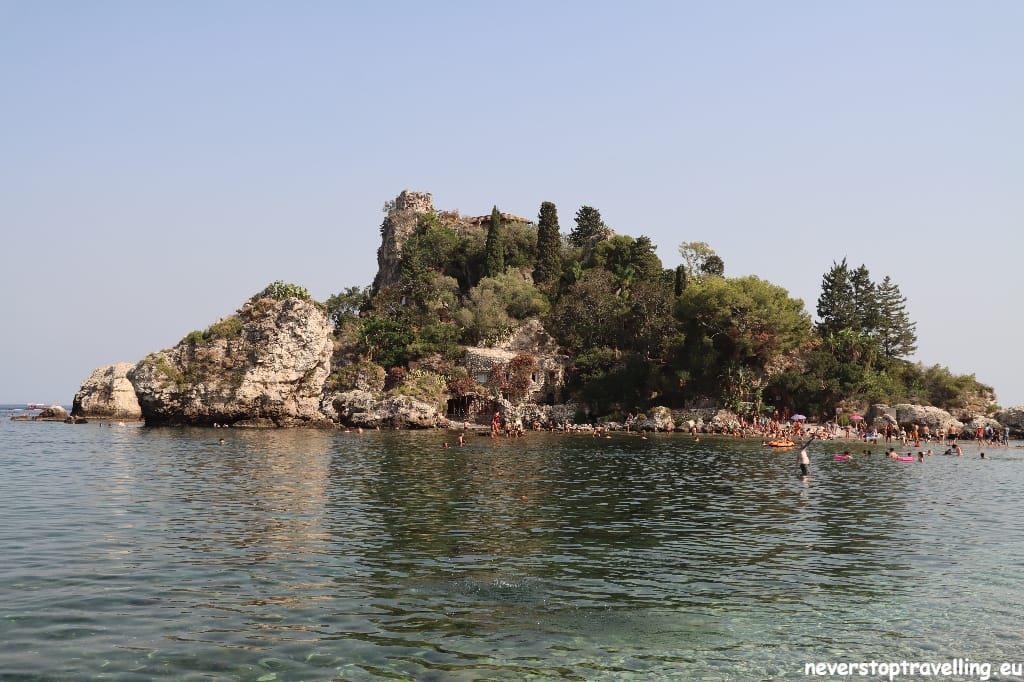 Isola Bella is een klein eiland aan de kustlijn van Taormina, bekend als de paral van de ionische zee. Tot 1990 was het eiland privé grondgebied maar werd daarna gekocht door Regio Sicilië en werd omgedoopt naar Natuur Reservaat. Het Eiland is te voet te bereiken als het eb is. Op het Eiland staat een oud klooster wat, tegen een kleine entree fee, te bezoeken is. Kosten €5,00 p.p. maar zou die in je zak houden want het eiland van afstand een stuk bijzonderder dan wat je op het eiland kunt zien. Vanuit Taormina heb je een prachtig uitzicht over deze baai, je zou hier kunnen spreken van een paradijs op aarde!