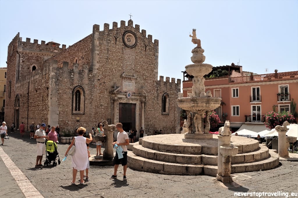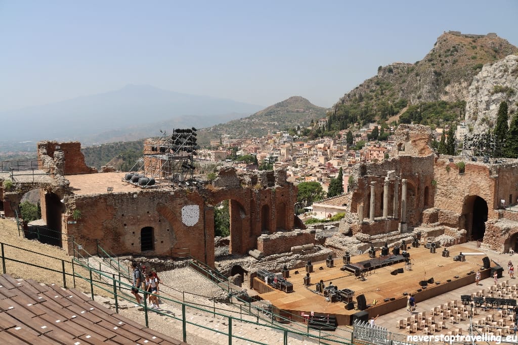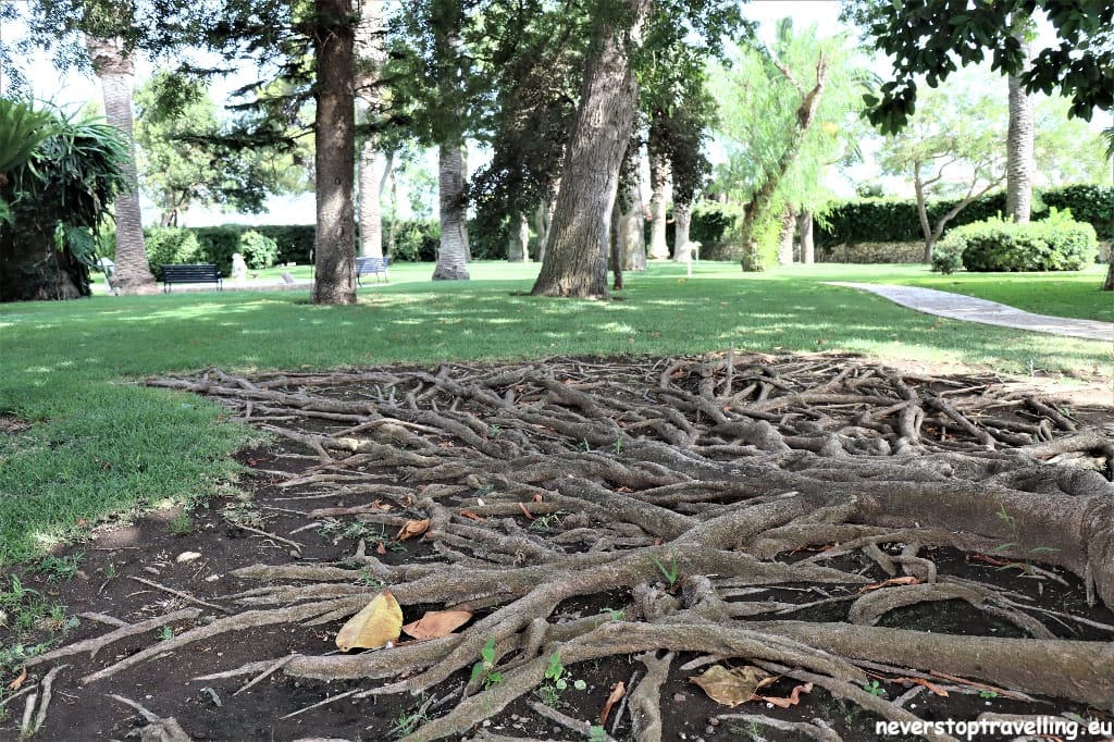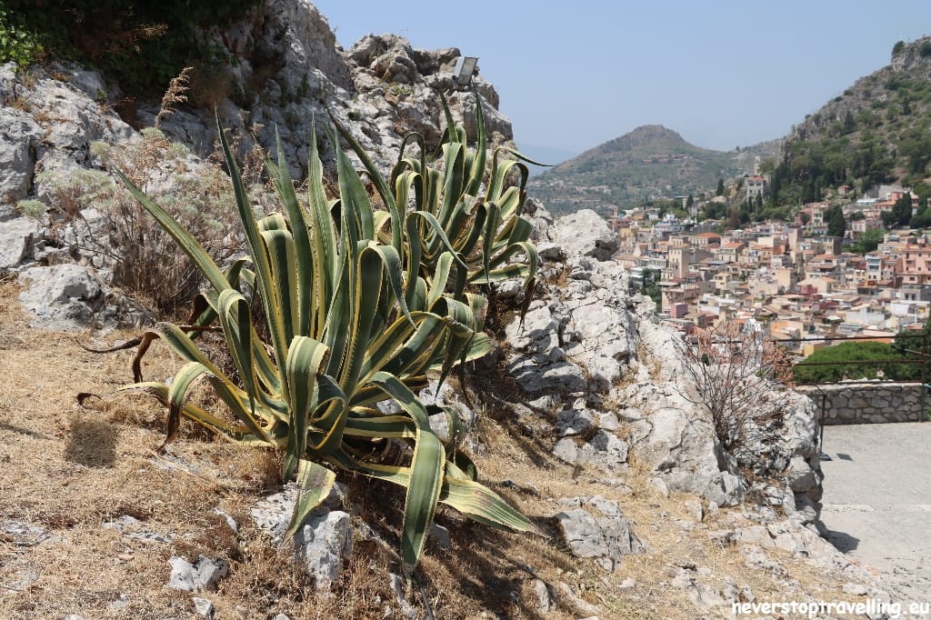 In Taormina tref je een geweldig stadspark aan, zeer goed onderhouden, diverse oudheden en monumenten sieren het park. Vergeet niet door te lopen naar ze zeezijde van het park, vanuit hier heb je een geweldig uitzicht over zee met aan de horizon de beroemde vulkaan de ETNA. Nu is de Etna een zeer actieve vulkaan en dat kun je hier wel zien en merken, continu dwarrelen er kleine asdeeltjes naar beneden en is de gehele omgeving wat heiig vanwege de rook die de Etna continu uitstoot.