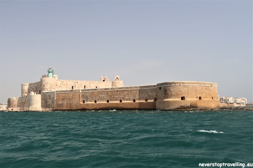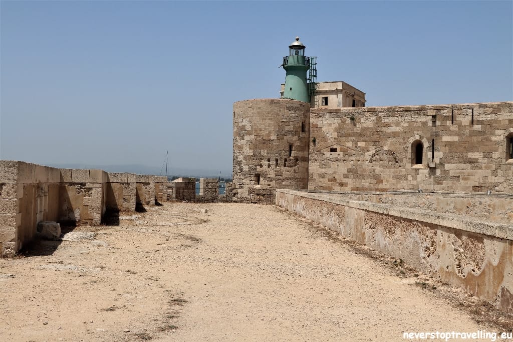 Het Castello Maniace is een citadel en kasteel in de Siciliaanse stad Siracusa. Het staat op de zuidelijkste punt van het eiland Ortigia, waarop het middeleeuwse centrum van de stad is gebouwd, en beheerst zodoende de ingang van de haven van Siracusa. De entree bedraagt € 7,00, kinderen onder de 18 kunnen kosteloos naar binnen. De entreehal is voorzien van een grote spiegel die met zware ballen defect gemaakt is (kunst?), geeft een erg bijzonder en apart beeld. Mooie uitzichten over de omgeving!
