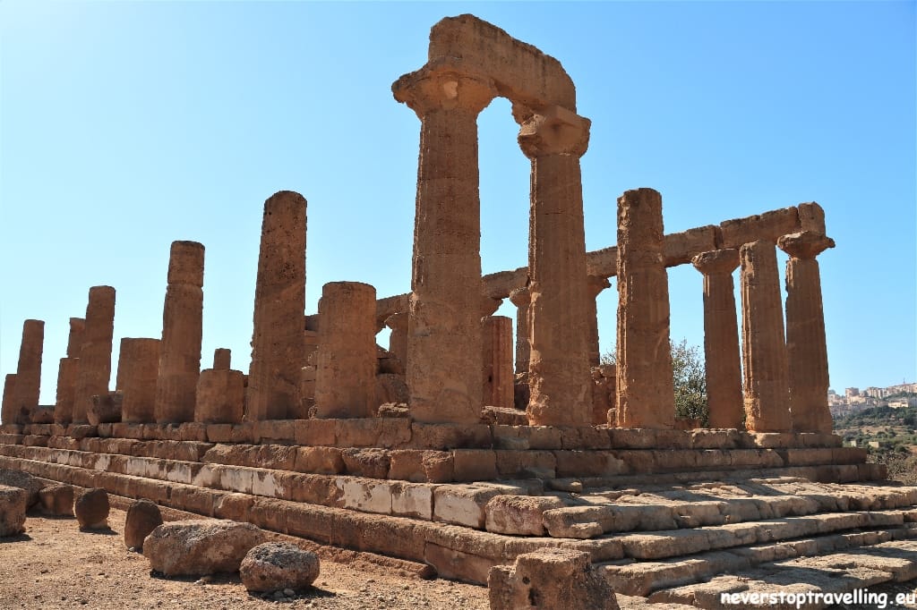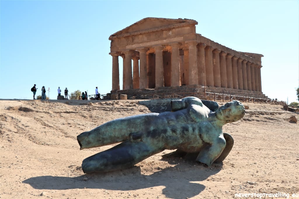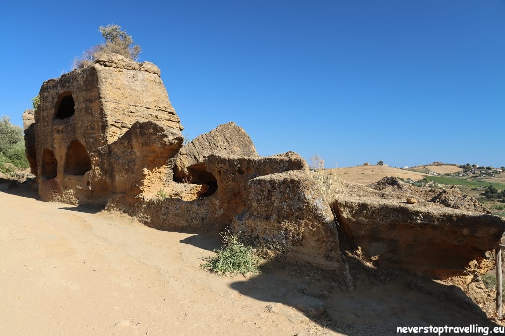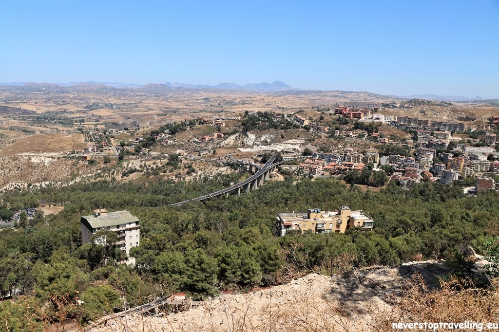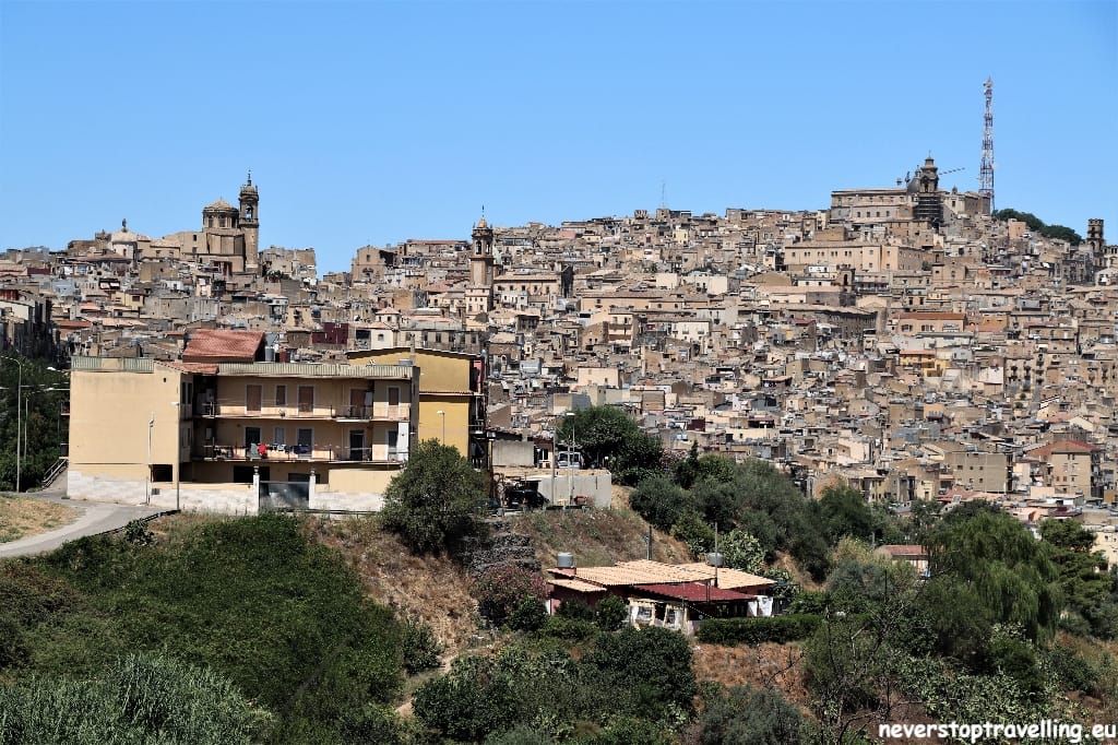 Agrigento is de hoofdstad van de gelijknamige provincie, de zuidelijkste van Italië. De Siciliaanse onofficiële naam van de stad is Girgenti. De stad ligt op een heuvel, op enkele kilometers van de Siciliaanse zuidkust, en telt ruim 59.000 inwoners. Leuke stad om eens doorheen te klimmen en klauteren, alles gaat hier of omhoog of omlaag, bij 38 graden een zweterige opgave. Mooie oude gebouwen en zoals alle steden hier, ook hier veel kerken en kloosters! Als je langs de stadsrand wandelt heb je weer prachtige uitzichten over de omgeving en de zee.