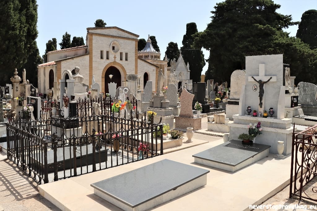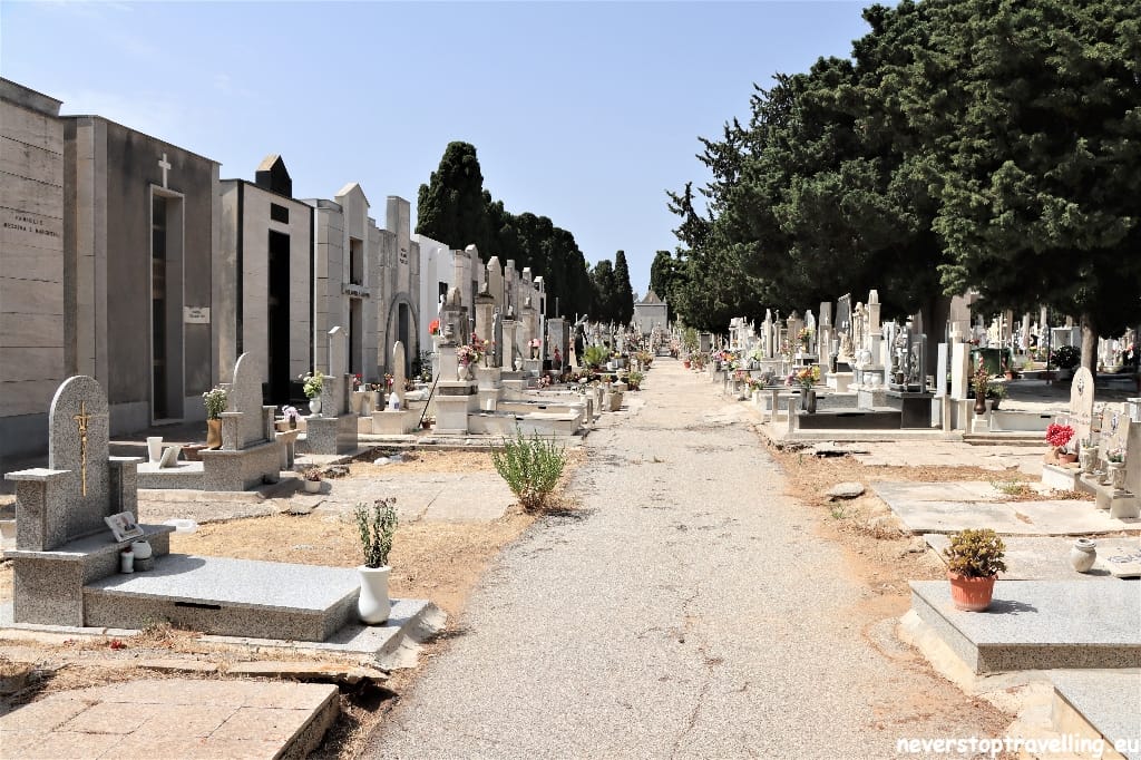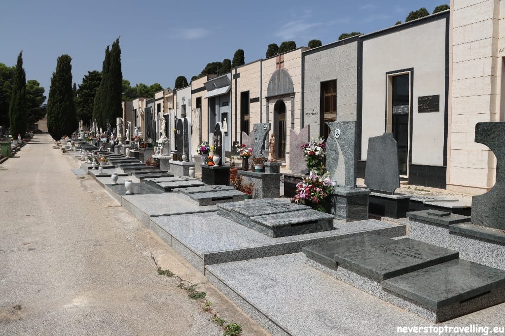 De laatste stop van deze Sicilië rondreis! Afstand ongeveer 145 km, kustroute gevolg. Wederom prachtige landschappen, erg veel olijfbomen in dit gebied, mooie plaatsjes en toch nog even een kijkje gaan nemen op een begraafplaats. Blijft toch altijd bijzonder hoe er in sommige landen wordt omgegaan met de doden, ook hier veel bovengrondse begravingen, in de vorm van kleine huisjes waar de gehele familie ligt of komt te liggen. Erg bijzonder om dit ook hier eens te bekijken! We verplaatsen ons op een zondag en dan zie je al snel dat alles redelijk stil ligt want op zondag wordt er niet gewerkt. Bijna alles is dicht en straten uitgestorven.