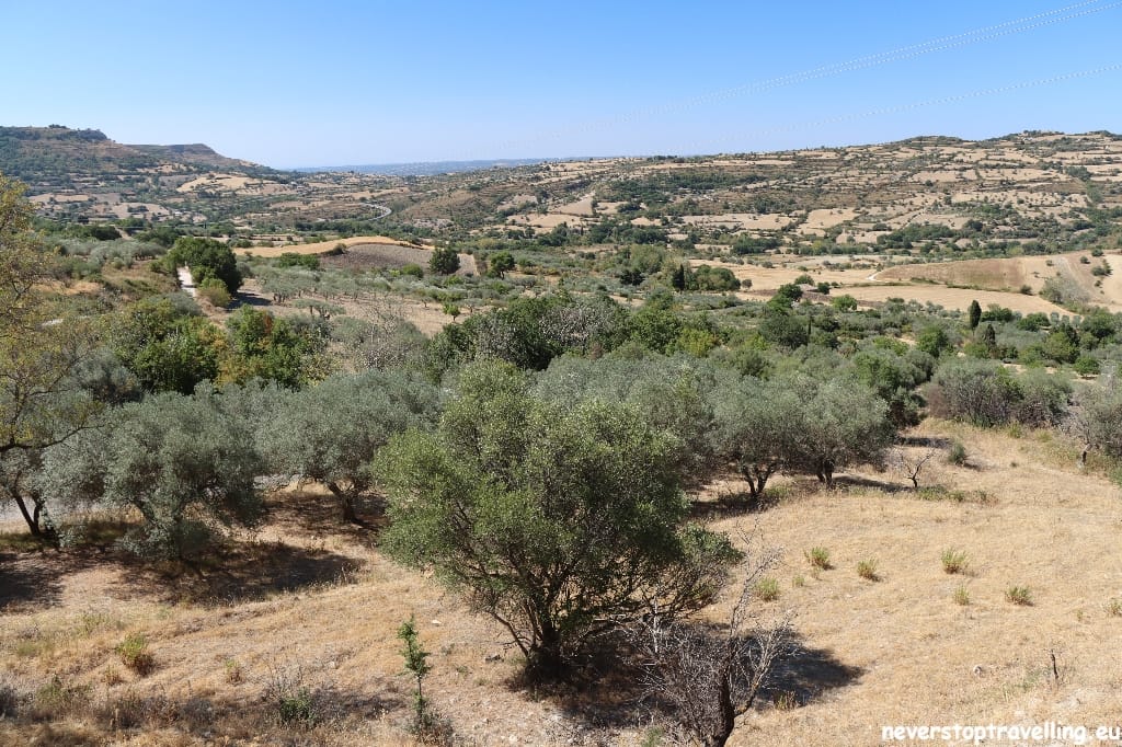 Sicilië wat ben je mooi! Stel je GPS vanuit Siracusa zeker niet in alszijnde kustroute maar neem de route via Vizzini en Caltagirone, deze weg is goed te berijden en je rijdt door prachtige landschappen. De wegen zijn goed, enkele plaatsen iets minder maar erg goed te berijden. Vanuit deze route zie je ook het Etna-gebied nog vanuit de andere kant. Enkele dagen terug waren hier hevige bosbranden en de konden we maar al te goed zien en ruiken. Fruitteelt is hier de hoofdmoot en dat zie je overal prachtig tegen de heuvels op groeien en bloeien. Zo af en toe afgewisseld met “verborgen” plaatsjes of juist stadjes die berg op prijken aan de horizon. Geen gejaag, gewoon lekker auto rijden en genieten!