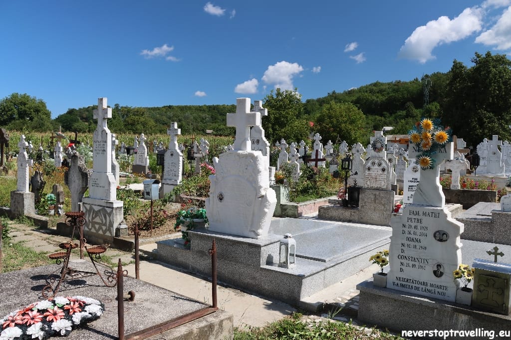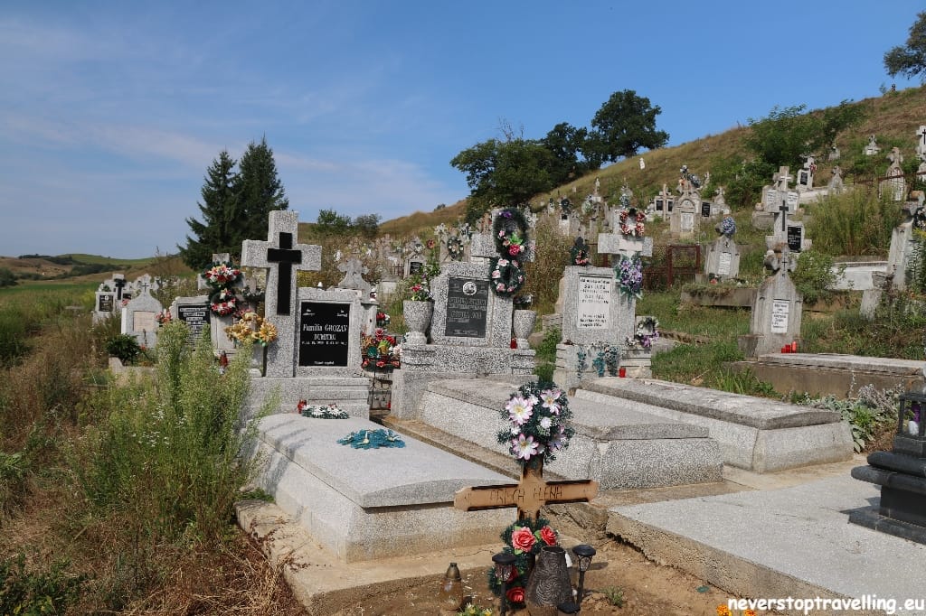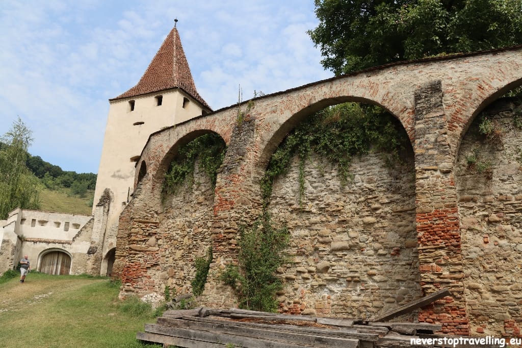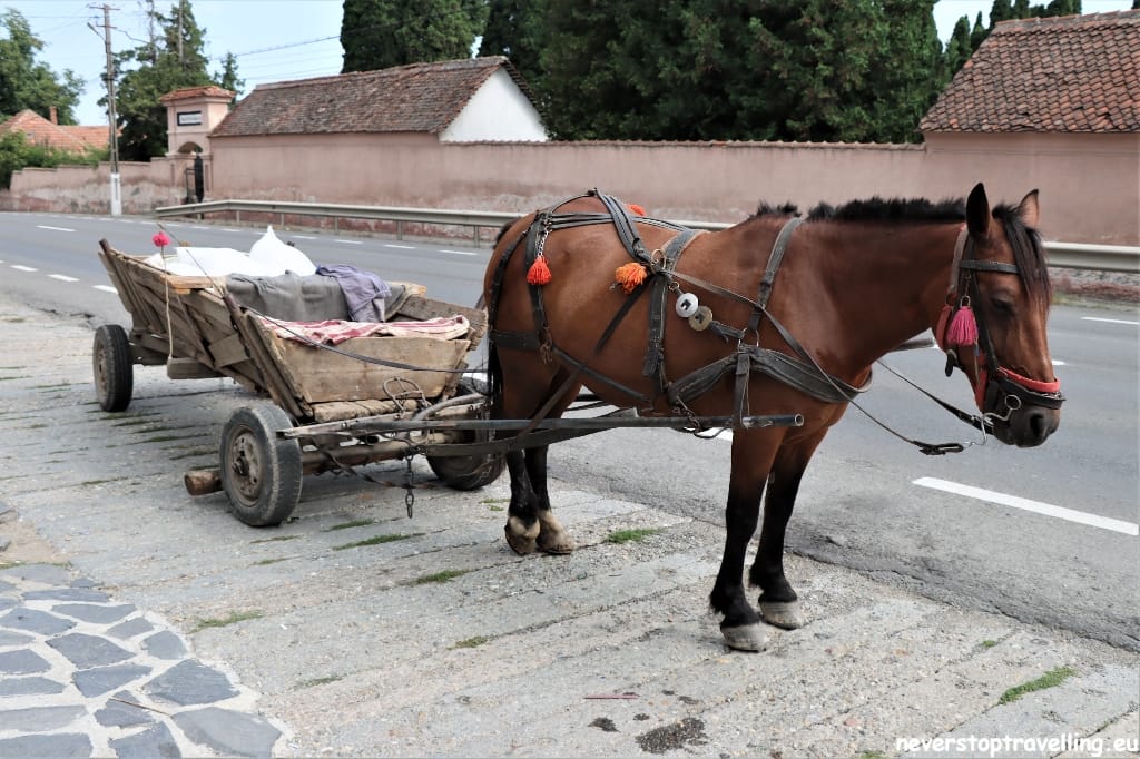 Wij vervolgen onze reis vanuit Sibiu richting Sighisoara maar maken eerst nog een stop in Biertan. Je kunt via de wat snellere doorgaande weg rijden, echter wij rijden binnendoor. Zeker een aanrader! Schitterende dorpjes met oude en soms vervallen huisjes, echt genieten. Prachtige kerkgebouwen en begraafplaatsen. Dit gebied is heuvelachtig, de weg kronkelt omhoog of omlaag en de uitzichten zijn adembenemend. Mensen en boeren verplaatsen zich hier veelal met paard en wagen, zeker ook opletten want men rijdt gewoon op de weg. We zien kuddes met schapen die hier nog begeleid worden door herders en honden, een lust voor het oog. Optimaal genieten voordat we het prachtige Biertan bereiken.