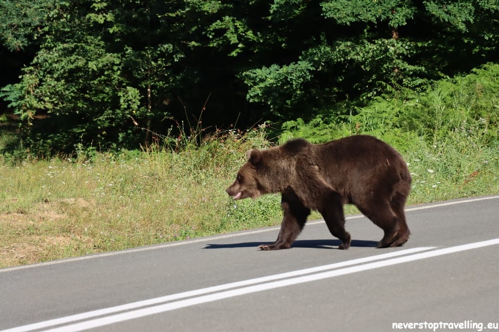 Één weg, veel gezichten! De Transfăgărăşan-weg verandert telkens. Achter elke haarspeldbocht loert een nieuw uitzicht en ook het omringende landschap is erg uiteenlopend. De zuidkant richting Pitesti ligt er aanzienlijk slechter bij terwijl de noordelijke kant vol haarspeldbochten ligt en ook mooier is. Als je een beetje geluk hebt kom je ook nog Roemeense bruine beren tegen, die leven namelijk in deze schitterende bosgebieden. Wil dus ook zeggen, opletten als je gaat wandelen of uit de auto gaat voor foto’s. Nu vallen beren niet per direct mensen aan maar het is natuurlijk wel wild-life en onvoorspelbaar. Wij kwamen deze twee (knuffel)beren tegen, lucky we!