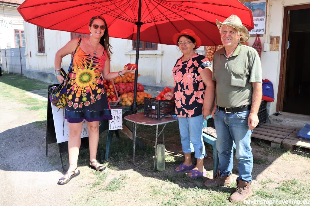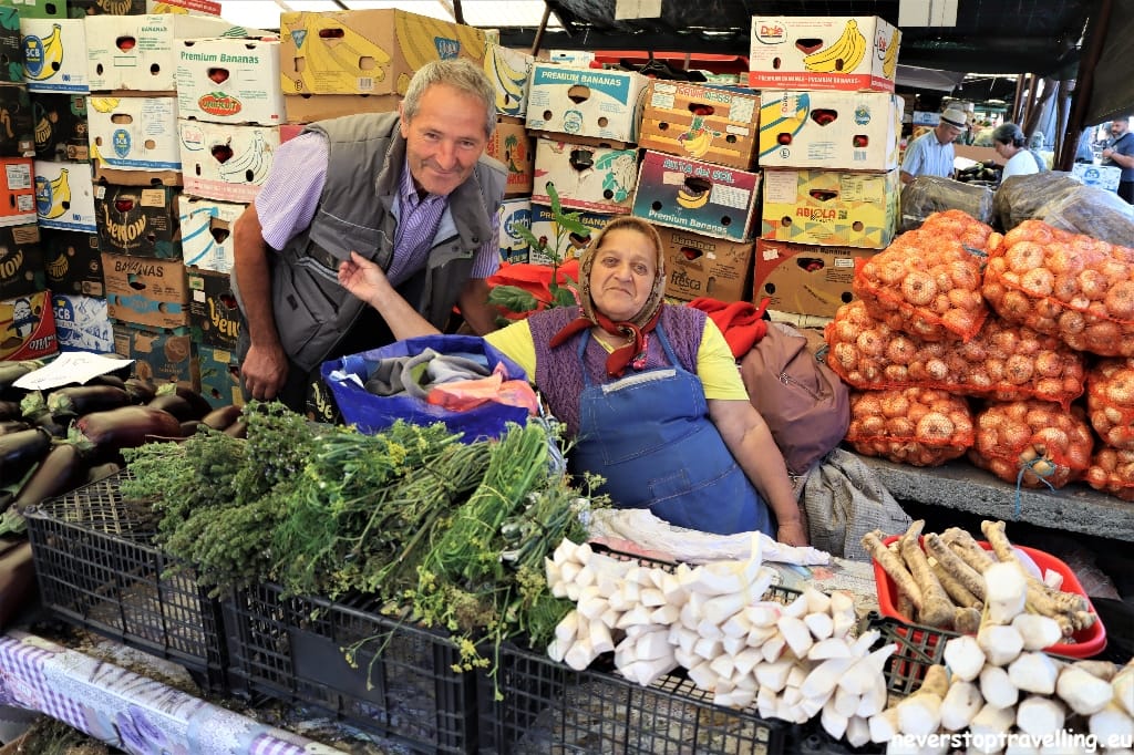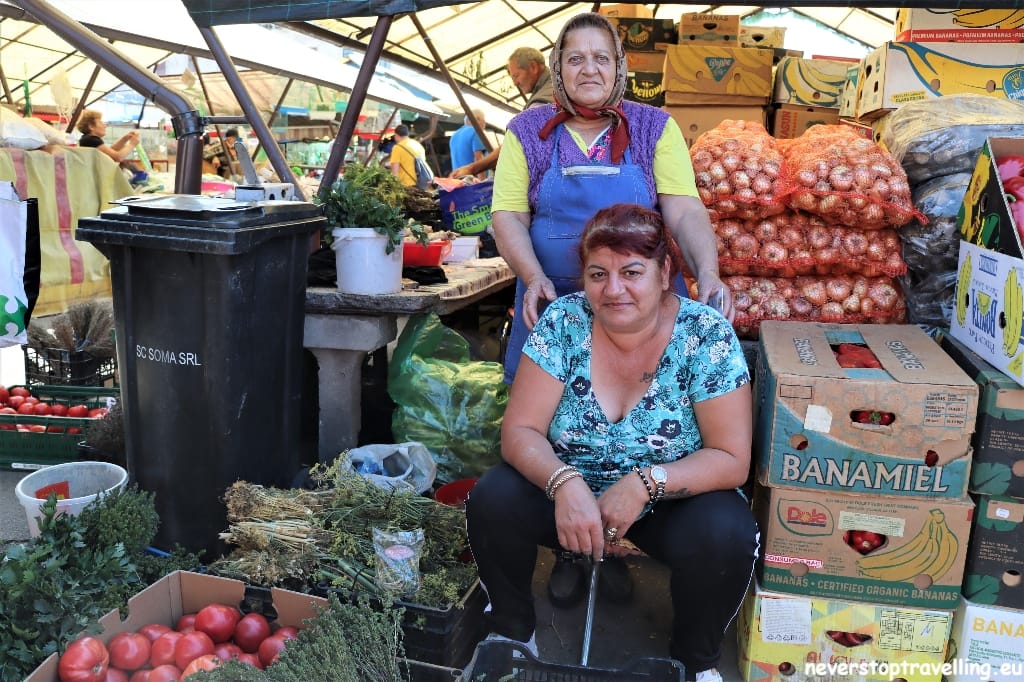 De Sibiu-markt mag je zeker niet overslaan. Een mix van permanente kraampjes en marktkraampjes siert het plein. Leuke mensen, absoluut niet opdringerig omdat de markt ook meer gericht is op lokale mensen dan toeristen. Gelukkig weten we nog wel enkele “schattige” Roemenen te strikken voor een leuke foto!