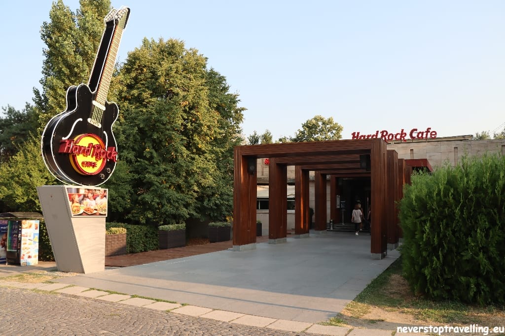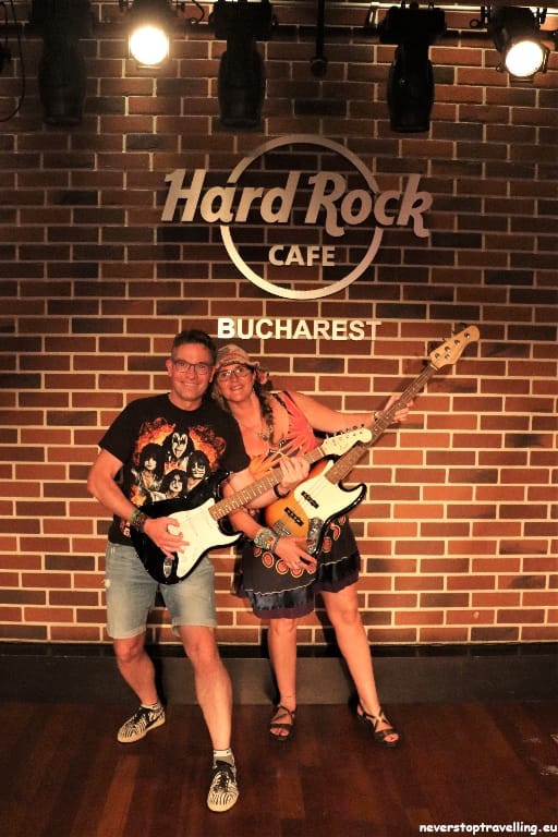 Diner in Hard Rock Café Bucharest, zeker voor ons altijd een must om een Hard Rock Café te bezoeken, als die tenminste aanwezig is. Deze hadden we in 2017 al eens bezocht maar een extra bezoek mocht niet ontbreken. Inmiddels hebben we 36 Hard Rock Café locaties, wereldwijd, op de teller staan. De HRC in Boekarest is een van de grootste van Europa, ligt een beetje buiten het centrum, prachtig gelegen aan een meer. Voor een paar euro brengt een taxi je graag op- en neer. Zeker bezoeken!