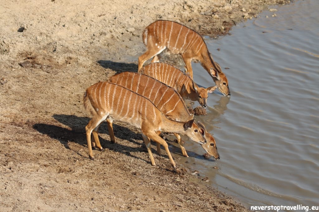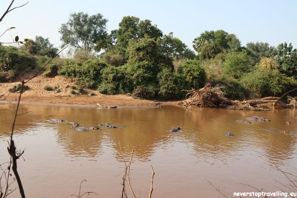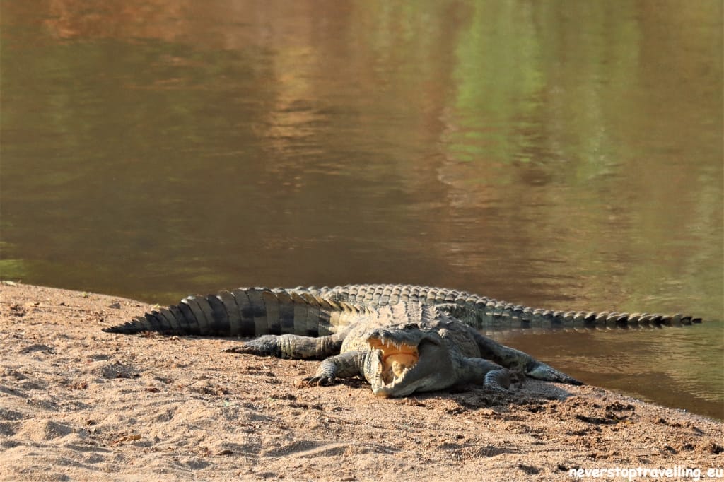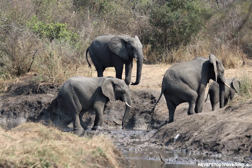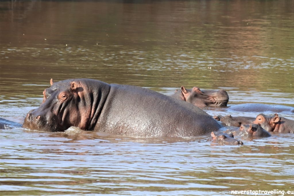 De koffie, die we bij Crooks Corner Viewpoint drinken, doen we midden tussen de Nijlpaarden, Krokodillen en Olifanten. Zelden zo’n gave koffiestop gemaakt!