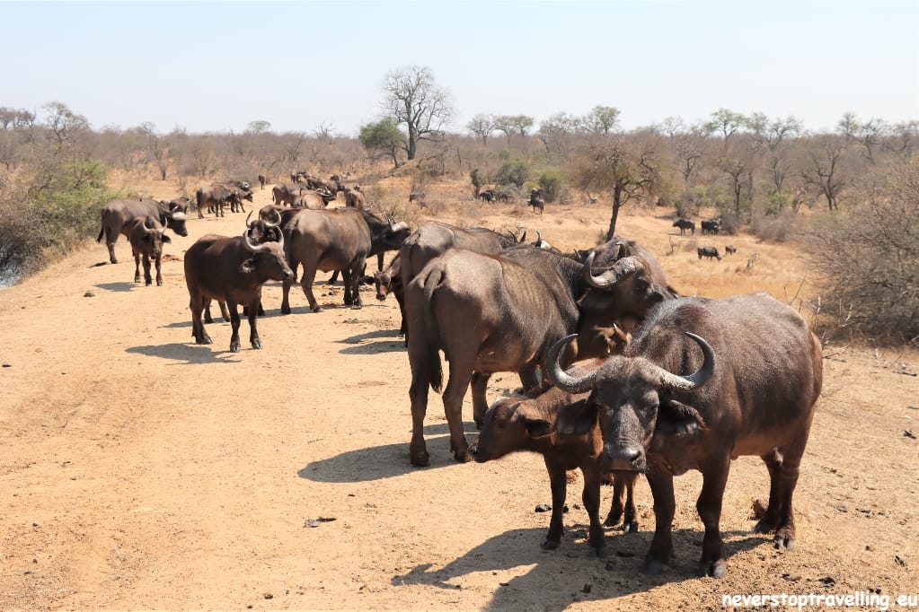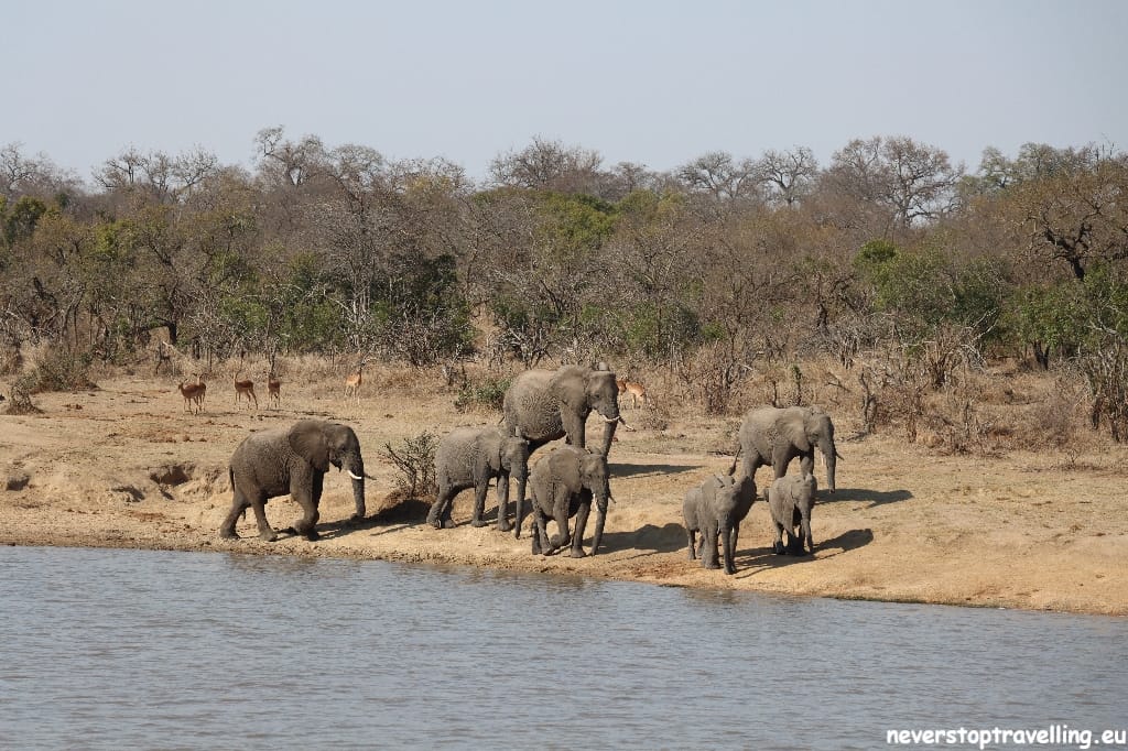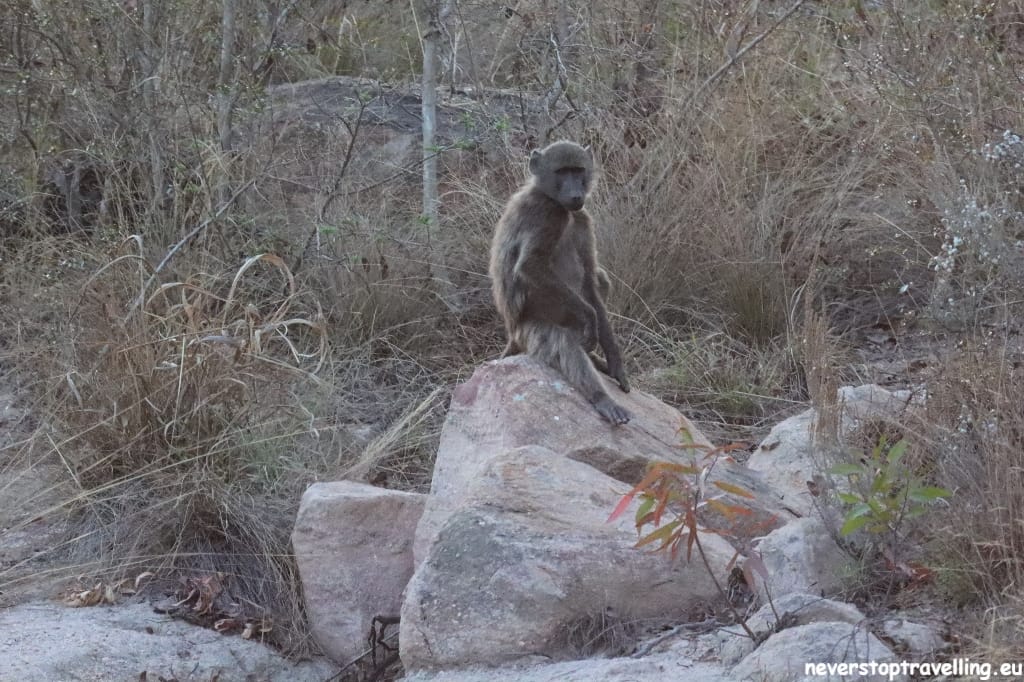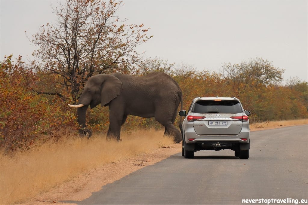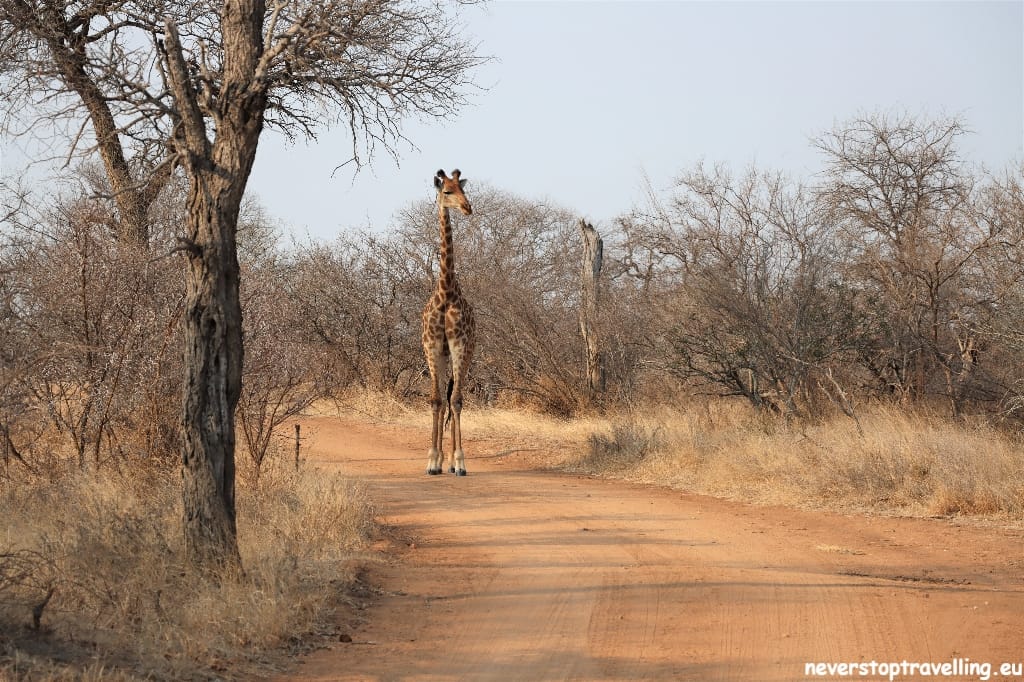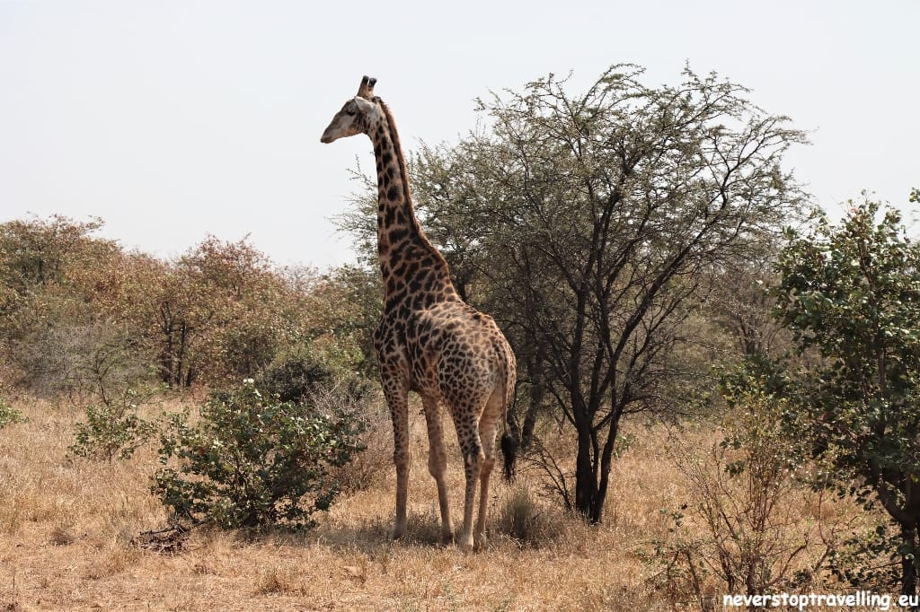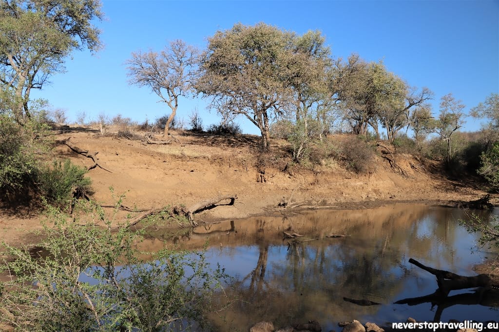 We besluiten niet de route van ons programma te volgen maar rijden dwars door het Kruger National Park en verlaten het park bij de Phalaborwa Gate. Een prachtige route door het park. Na uren rijden ben je het woordje “Park” wel snel vergeten! Met een lengte van 380 km en een breedte van 60 km heeft het Park een oppervlakte van bijna 20.000 km2. Let wel op, deze route is ruim 250 km en de maximale snelheid in het Park is 50 km/h op de verharde weg en 30 km/h op de zandwegen. De hoofdwegen in Kruger zijn verhard maar er voldoende loops te nemen waarin je de verharde wegen kunt verlaten en genieten van het Safari rijden. Zorg wel dat je een plattegrond bij je hebt van hebt park, zodat je goed in beeld hebt welke afslag je eventueel neemt. Een volle tank brandstof is een must want op dit traject kom je geen tankmogelijkheden tegen, de eerste is pas net buiten de Phalaborwa Gate. Let op, bij de Pafuri Gate is geen tankstation dus zorg tijdig voor een volle tank! Lunchpakket, wat ze graag voor je maken in het Pafuri Camp, is een aanrader want je komt nergens geen eet- en drinkgelegenheden tegen!