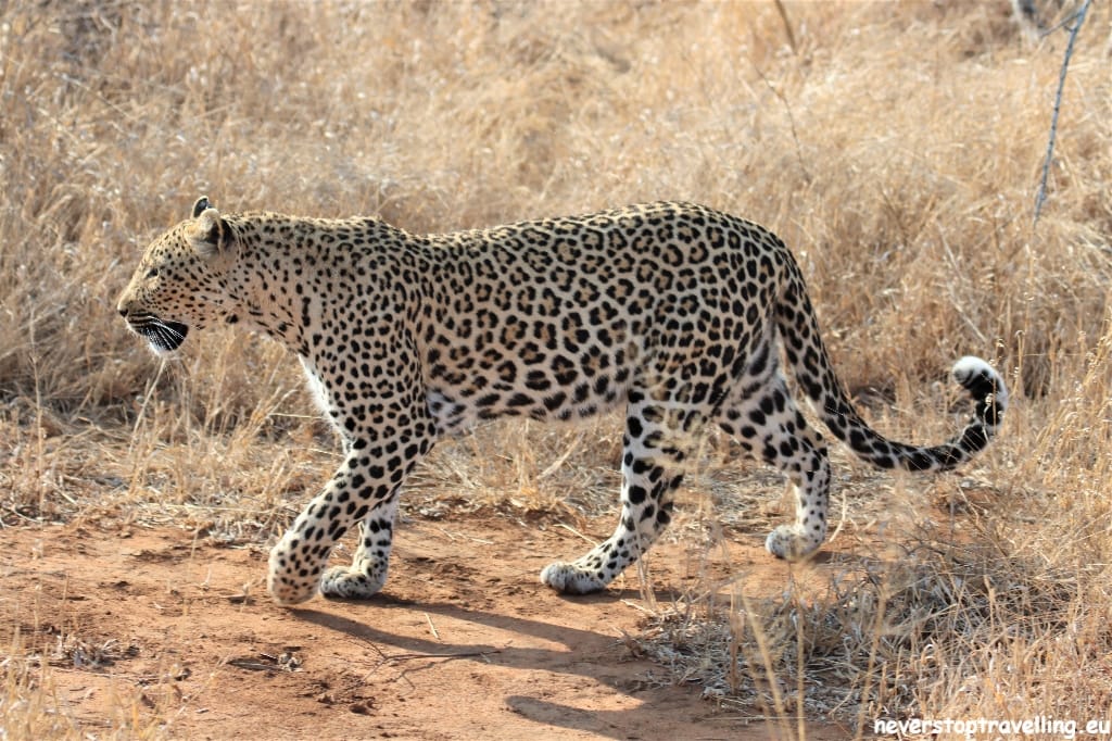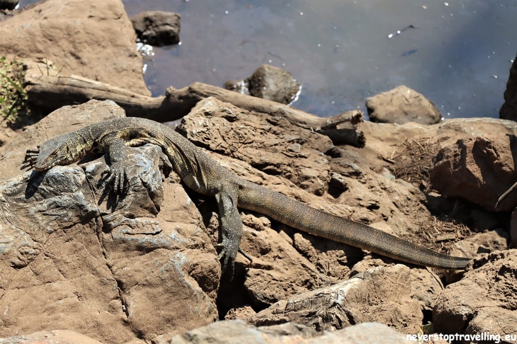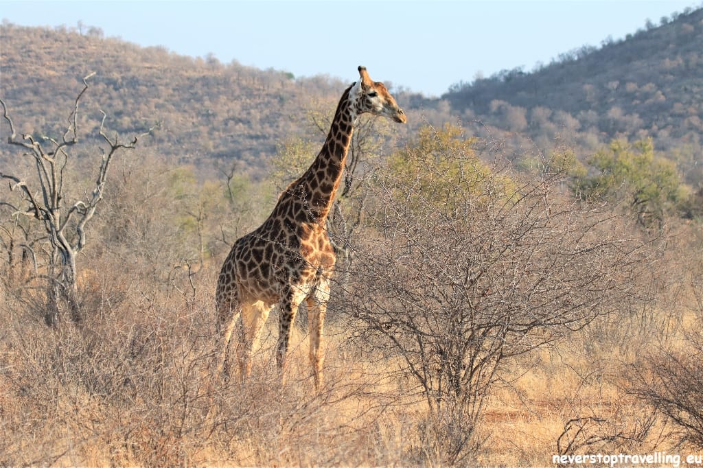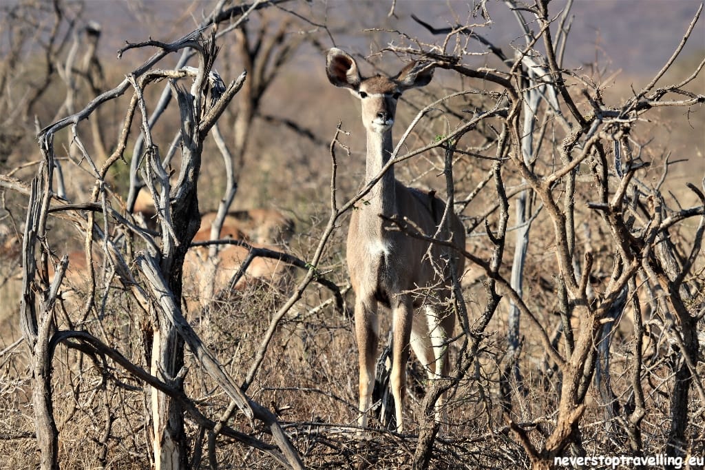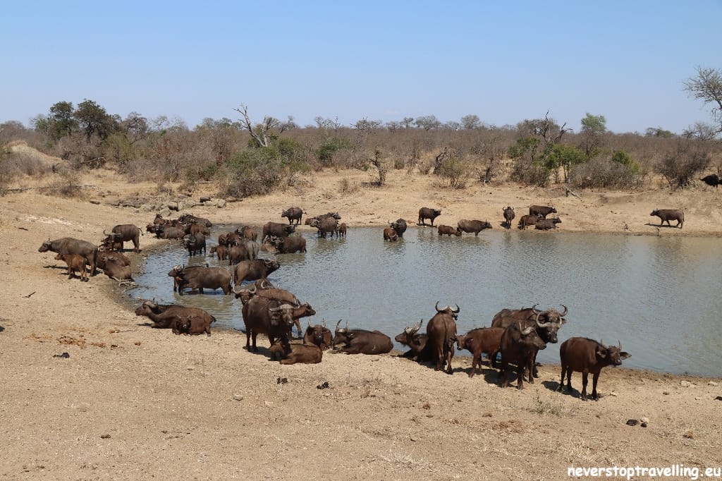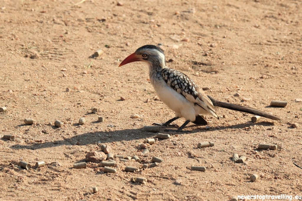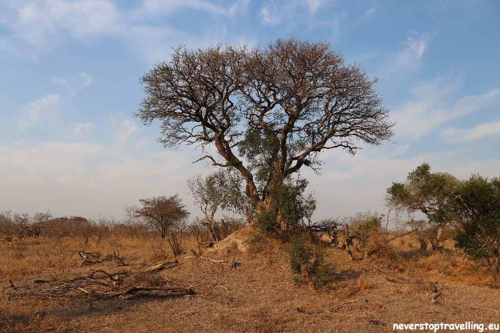 We besluiten niet de route van ons programma te volgen maar rijden dwars door het Kruger National Park en verlaten het park bij de Phalaborwa Gate. Een prachtige route door het park. Na uren rijden ben je het woordje “Park” wel snel vergeten! Met een lengte van 380 km en een breedte van 60 km heeft het Park een oppervlakte van bijna 20.000 km2. Let wel op, deze route is ruim 250 km en de maximale snelheid in het Park is 50 km/h op de verharde weg en 30 km/h op de zandwegen. De hoofdwegen in Kruger zijn verhard maar er voldoende loops te nemen waarin je de verharde wegen kunt verlaten en genieten van het Safari rijden. Zorg wel dat je een plattegrond bij je hebt van hebt park, zodat je goed in beeld hebt welke afslag je eventueel neemt. Een volle tank brandstof is een must want op dit traject kom je geen tankmogelijkheden tegen, de eerste is pas net buiten de Phalaborwa Gate. Let op, bij de Pafuri Gate is geen tankstation dus zorg tijdig voor een volle tank! Lunchpakket, wat ze graag voor je maken in het Pafuri Camp, is een aanrader want je komt nergens geen eet- en drinkgelegenheden tegen!