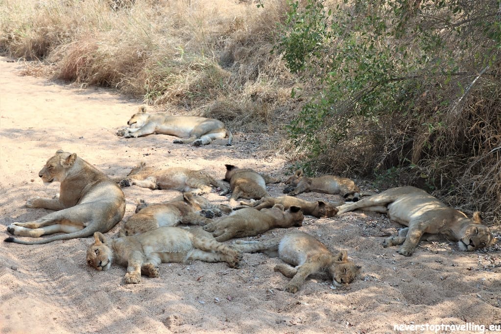 Deze ochtend een zeer succesvolle drive! Nooit eerder zagen we een tweetal Luipaarden in 1 drive, waarbij de laatste wel erg dichtbij kwam. Spannend en grandioos tegelijk. 14 leeuwen die lagen uit te buiken na een nachtelijk etentje en een zeer grote groep buffels. Tel daarbij op enkele gieren en een diversiteit aan ander wild. Succes dus!