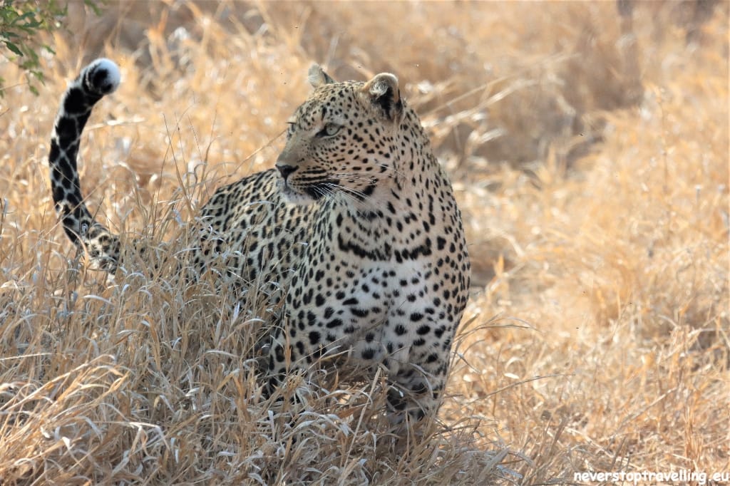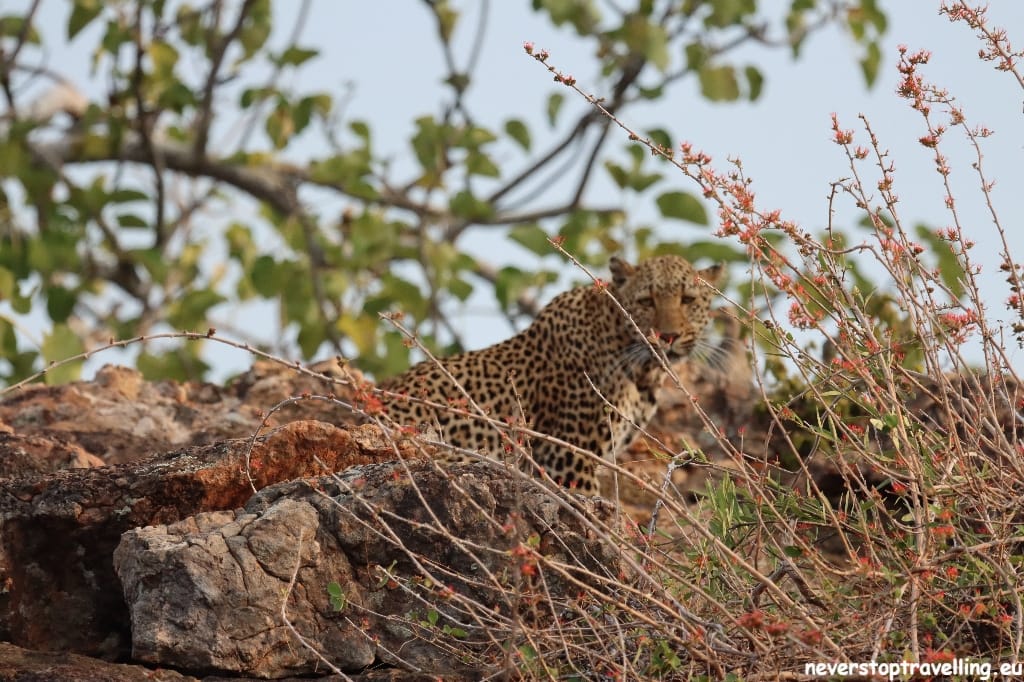 Tijdens onze tweede Game-Drive vanuit het Pafuri Camp gaan we naar een prachtig uitzichtpunt waarin we de Luvuvhu Rivier diep in een kloof weg zien draaien tussen de bergen! Wat een geweldige plaats voor een zonsondergang en een bijbehorend drankje. Grandioos! Onderweg maken we onze Big-5 van deze trip compleet, we spotten een luipaard. Wederom een geslaagde game-drive.