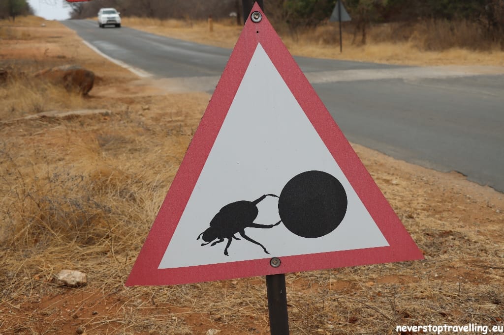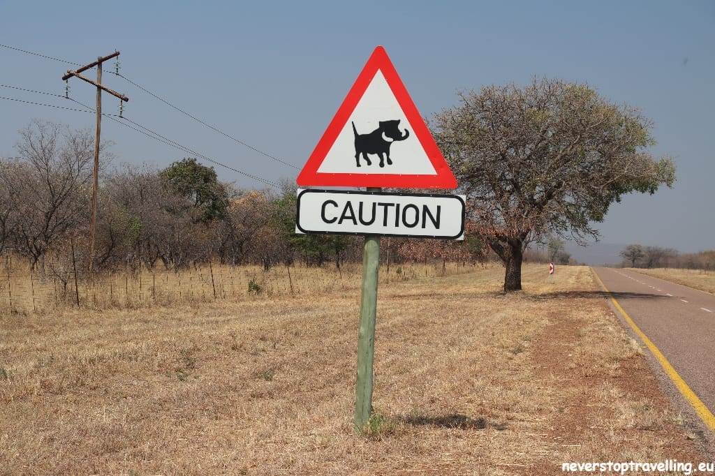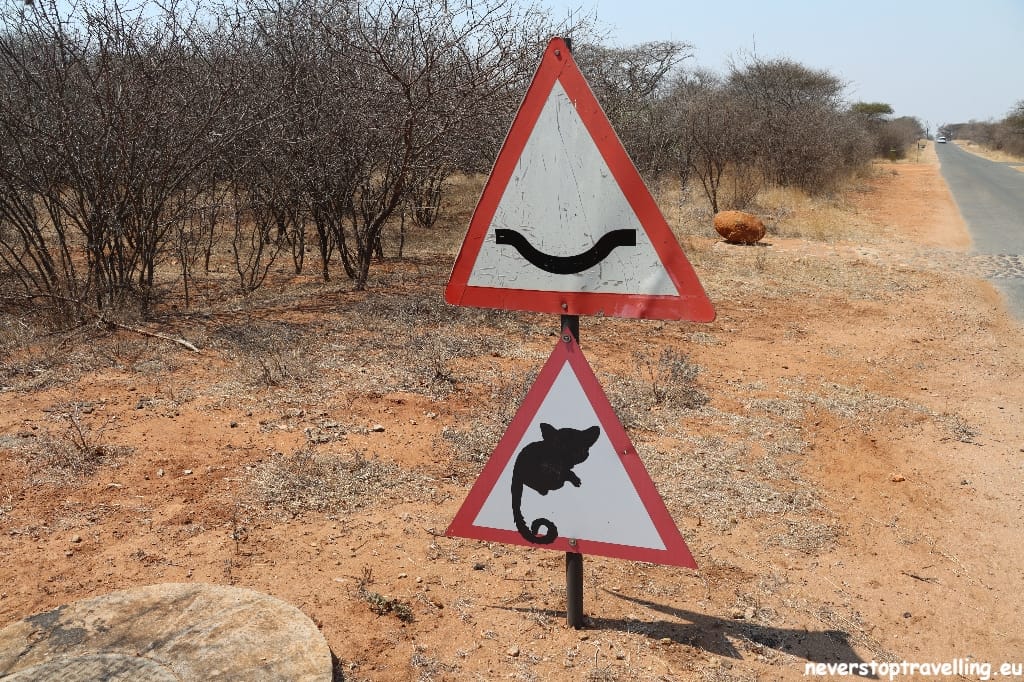 Het leuke van Afrika is dat je ook verkeersborden tegen komt die wij in Europa niet kennen!