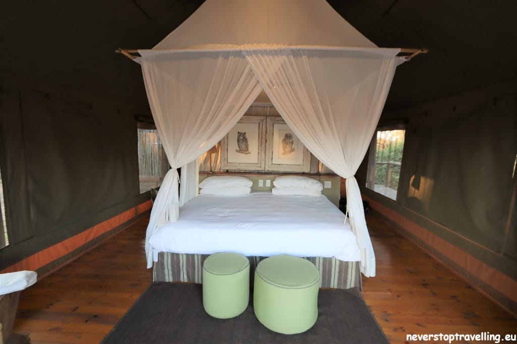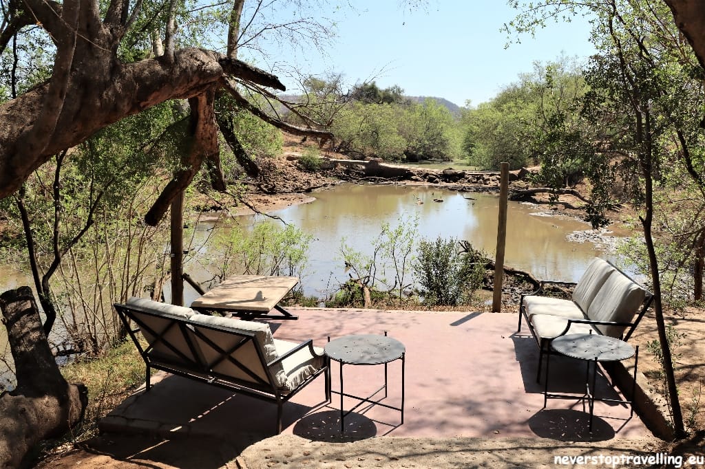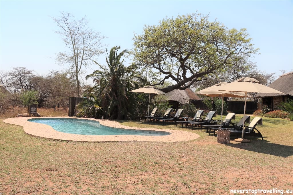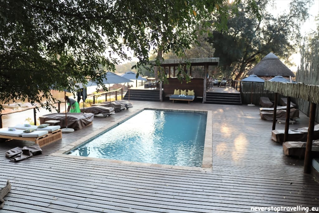 Tussen de games-drives door biedt dit Camp erg goede relaxed faciliteiten! Lekker liggen aan het zwembad met uitzicht over de rivier waar de dieren uit het niets voor je staan te drinken of wil je liever een massage in je safari-tent? Vele mogelijkheden en qua eten en drinken kom je niks te kort, een fantastische manier om het Noorden van Kruger te beleven! Het Camp is niet omheind dus alle wilde dieren kunnen zomaar opduiken naast je tent, je loopt wel via verhoogde bruggen van de Lodge naar je tent. Daarbij krijgt iedereen hier een walkie talkie waarmee je direct in verbinding staat met de staf in geval van nood. Prima geregeld!