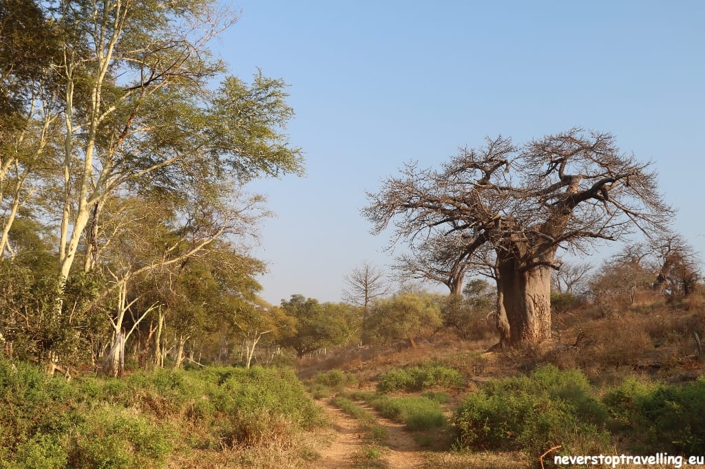Vandaag reizen we naar de Makuleke-concessie, dat in het uiterste noorden van het Kruger Nationale Park gelegen is. De concessie is tegelijkertijd gelegen in het uiterste noordoosten van Zuid-Afrika. Een zeer bijzondere rit over de R525, wat wel een Baobab paradijs lijkt te zijn! Nooit zoveel (niet enkele maar honderden!) van dit soort bomen bij elkaar gezien, prachtig. Deze bijzondere bomen soort komt in sommige delen van Afrika voor en rijkt hier door tot ver in Kruger National Park. Diverse Baobab bomen die hier voorkomen hebben een leeftijd tot 1.500 jaar!