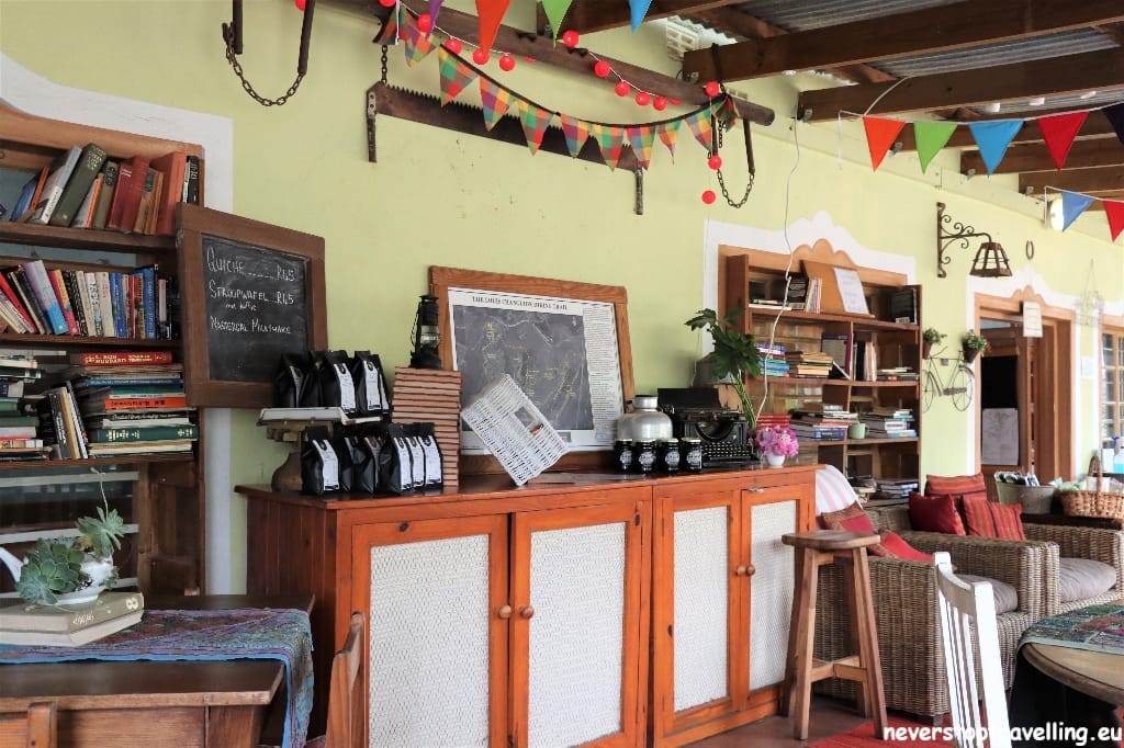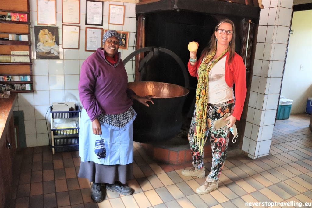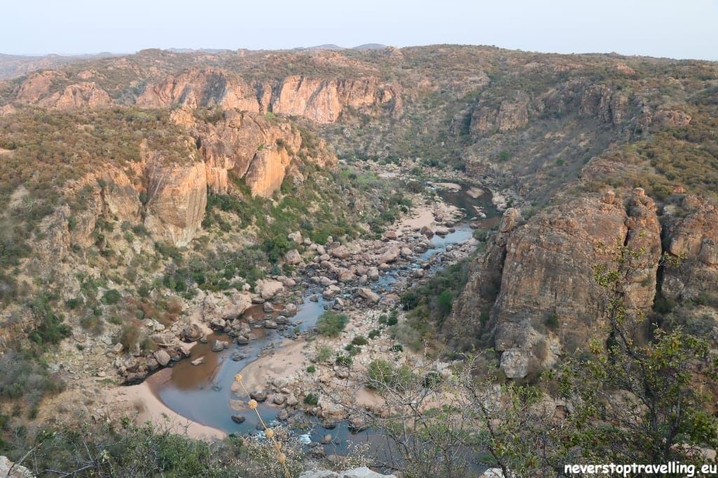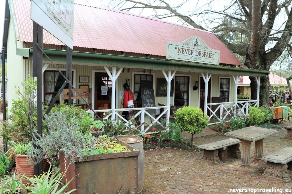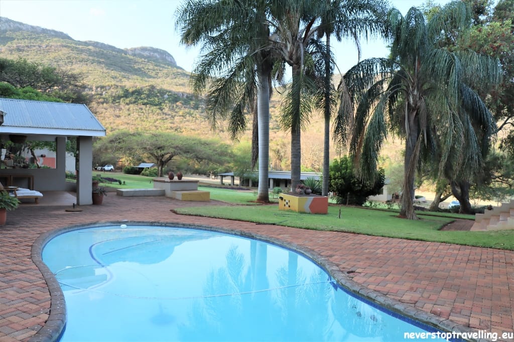 We hebben een goed en uitvoerig gesprek met journalist en eigenaar van Kings Walden Garden Manor, Brett genaamd, hij geeft ons nog enkele leuke route suggesties door de omgeving. Echte leuke tips voor reizigers! Zo drinken we koffie in het authentieke Haenertsburg, waar we via Magoepaskloof Road stall (R71) komen. Een prachtige en steile bergweg. Haenertsburg kent enkele leuke oude gebouwen voor een gezellig bakje koffie, of kijk je liever rond in een oude bookstore? Vergeet bij de innie-Berg Coffe Shop de stroopwafels niet.
