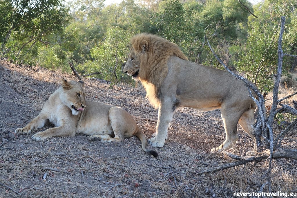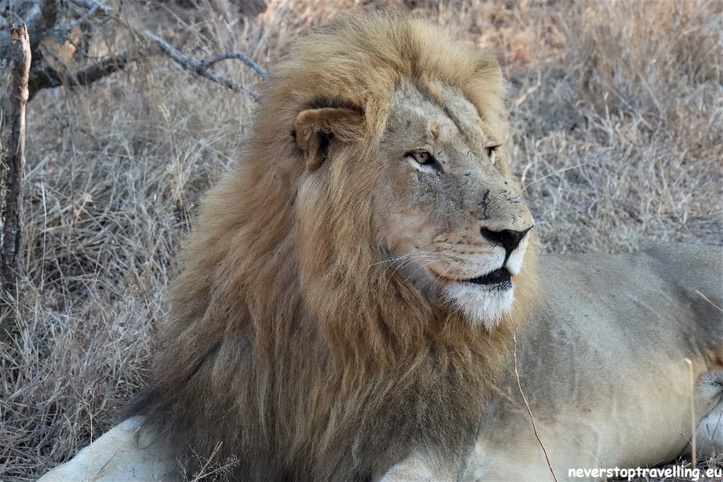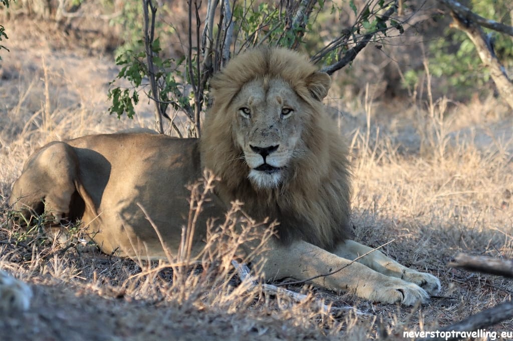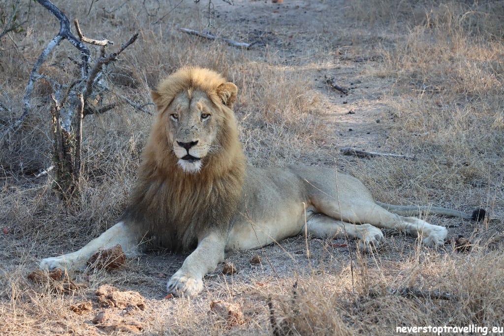 Voordat we doorreizen naar onze volgende accommodatie doen we nog mee aan de ochtend game-drive! We hebben deze dag immers een wat kortere afstand te overbruggen dus we kunnen met een gerust hart wat later vertrekken. Op zoek naar… Gevonden, de Lion King!