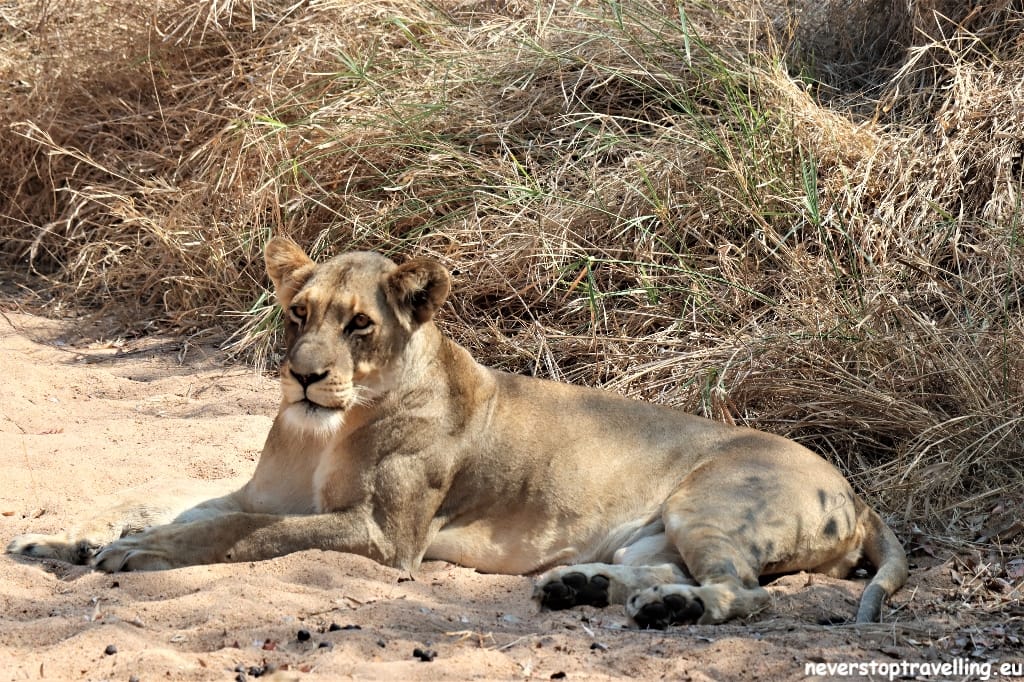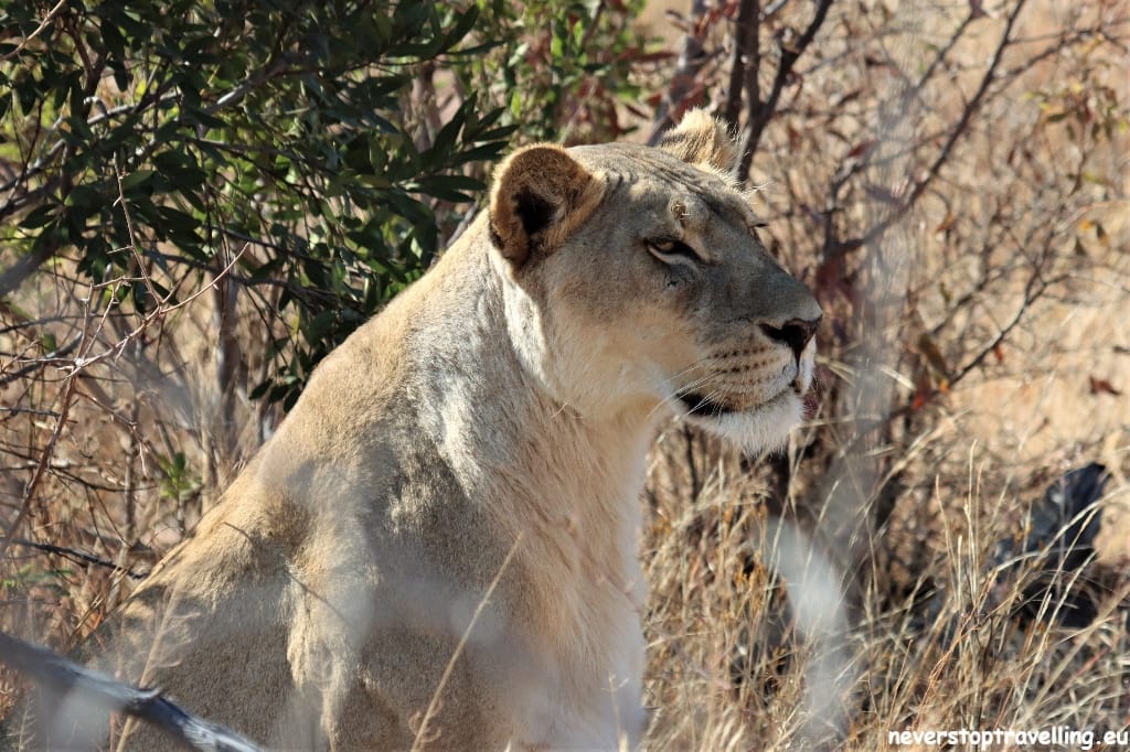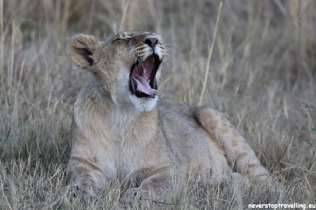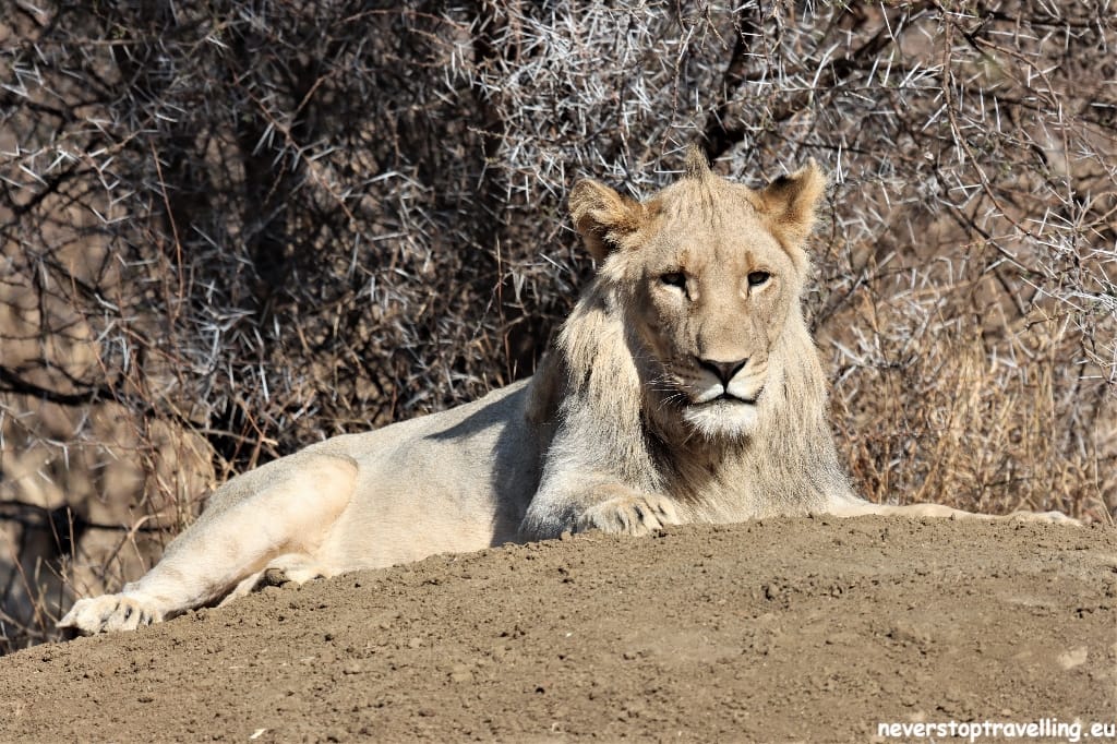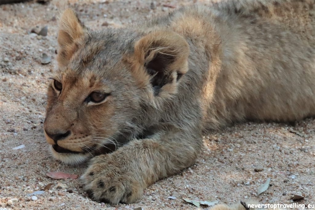 Voordat we doorreizen naar onze volgende accommodatie doen we nog mee aan de ochtend game-drive! We hebben deze dag immers een wat kortere afstand te overbruggen dus we kunnen met een gerust hart wat later vertrekken. Op zoek naar… Gevonden, de Lion King!