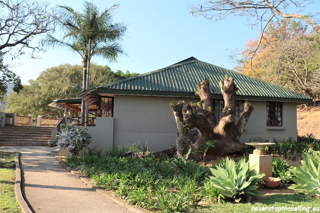 We verblijven de komende dagen in de Madi A Thavha Mountain Farm Lodge. āWater uit de bergenā is de letterlijke vertaling van Madi a Thavha. Madi a Thavha mountain farm is een Lodge op een boerderij, gelegen in een mooie en rustige vallei. De gasten die op de boerderij verblijven kunnen genieten van het boerderijleven, de natuur, het mooie uitzicht en de comfortabele en stijlvol ingerichte gastenkamers en gastenhuizen, gelegen rondom het originele farmhuis. Het farmhuis met open verandaās, is het centrale ontmoetingspunt waar de gasten samen komen. Er is een receptie, zit- en eetgelegenheid, winkel met lokale kunstnijverheid en een open keuken. Het farmhuis is omgeven door een tuin met zwembad, zonnedek en overdekte lapa.