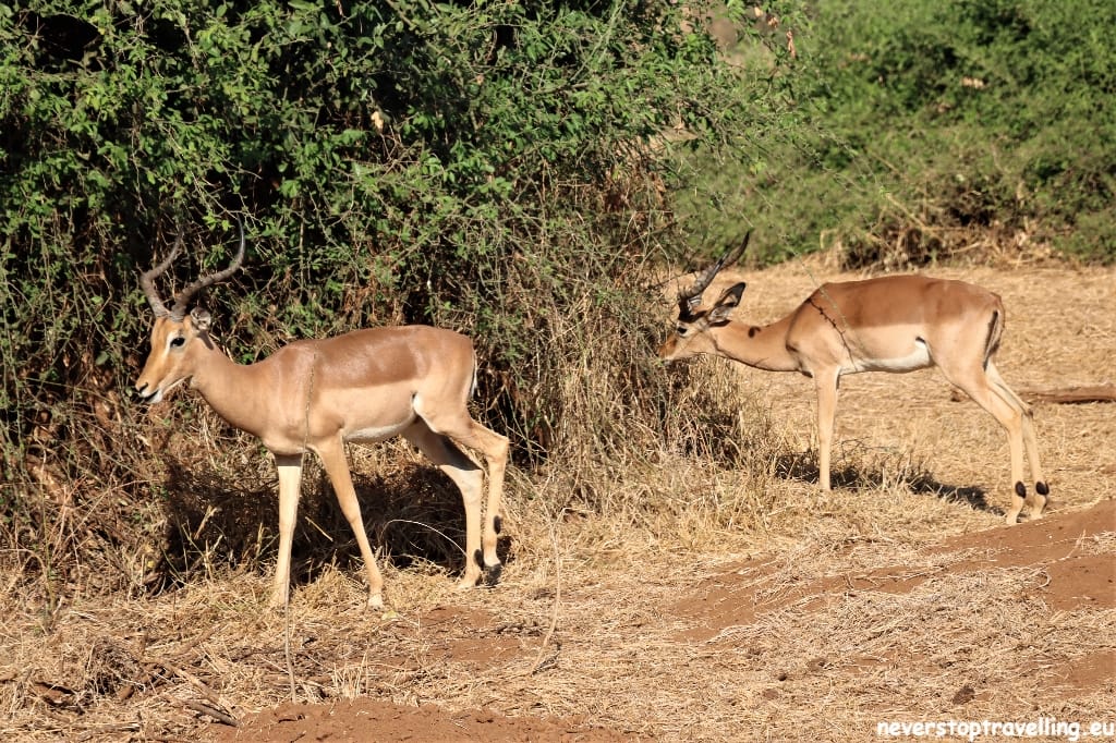 Weetje: Impala’s zetten als het kouder wordt hun haren omhoog, zodat de stilstaande lucht tussen de haren een soort “deken” wordt, hiermee blijven ze warm. Als je de Impala’s in de vroege ochtend ziet lijken ze donker terwijl ze in de hitte van de dag lichter en glanzend zijn, de haren liggen dan immers plat.