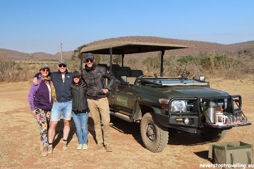 We nemen afscheid van het super leuke team van Nungubane Game Lodge, op en top gezelligheid, zelden zo’n gave locatie gezien waar het “welcome home” zo goed kan worden beleefd.