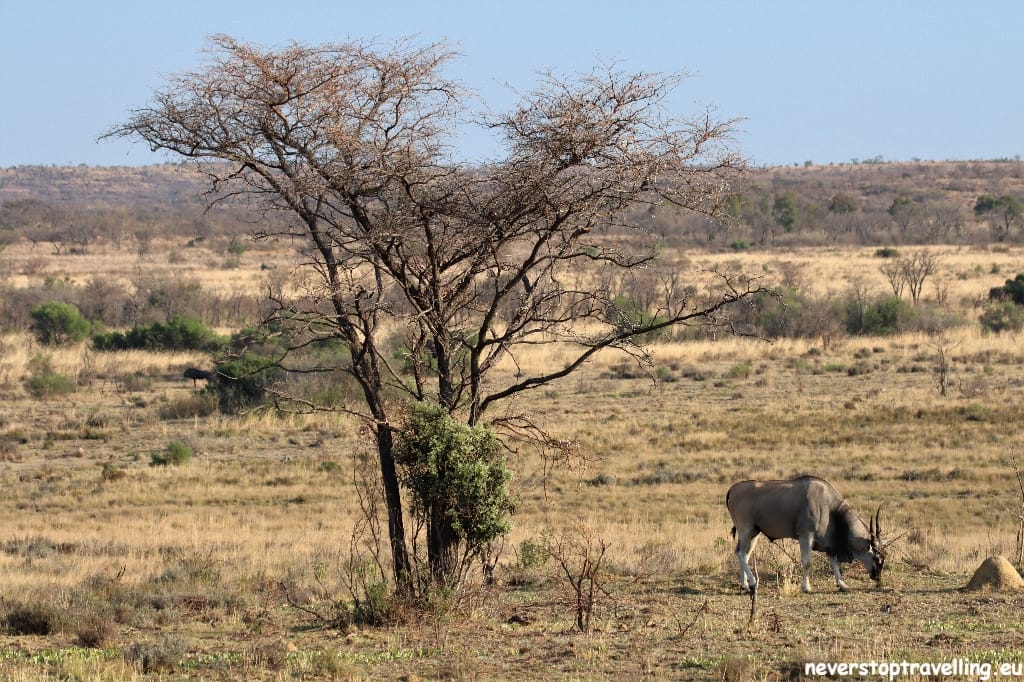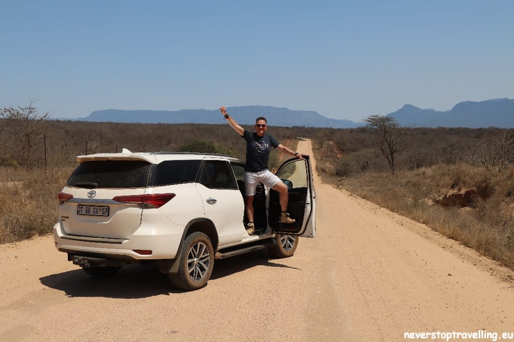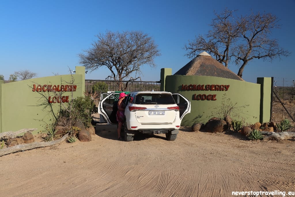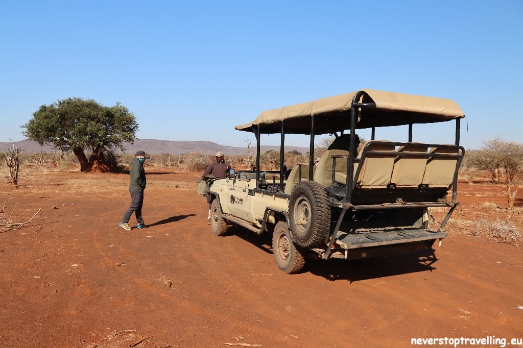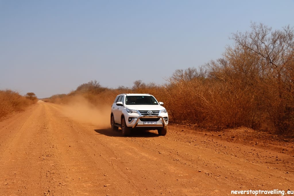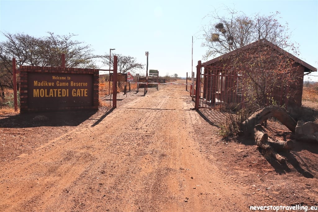 Na het verlaten van de “snelweg” en de route langs Johannesburg en door Pretoria ga je richting Madikwe Game Reserve, je rijdt hier door schitterende en typische Zuid Afrikaanse plaatsjes! Een stopje bij een hair salon, je auto wassen of moeten je schoenen nog gerepareerd worden, het kan hier allemaal. Vriendelijkheid op en top! Parkeer je ergens je auto dan duikt er vast iemand op die je auto “bewaakt” totdat je terug bent. Schrik hier niet van en laat de jongens zijn gang gaan, zit geen crimineel gedrag achter. Nadien steek je 10 Rand (ongeveer ⬠0,60) toe en je hebt er vast en zeker weer een Zuid Afrikaanse vriend bij. Zo help je natuurlijk de locals ook een beetje vooruit. Het laatste gedeelte is veelal zandweg, autoventilatie op de stand circuleren i.p.v. lucht van buiten.
