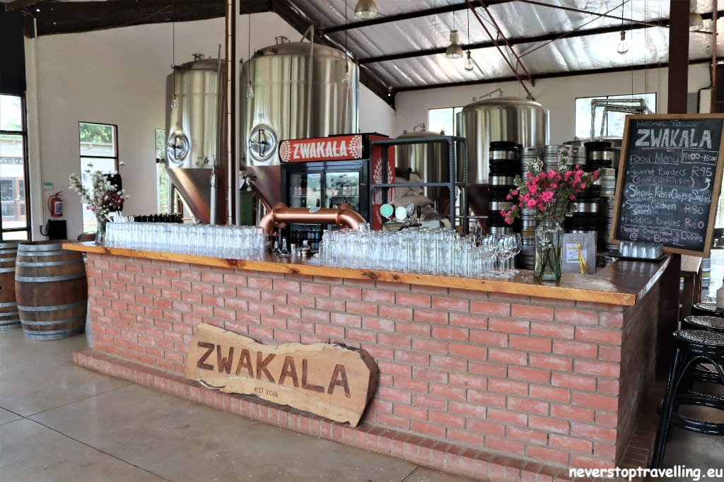 Leuke stop in de bush is de lokale Zwakale Brewery, alwaar een vijftal verschillende biersoorten worden gebrouwen. De eigenaar geeft ons een korte rondleiding want de brouwerij is vandaag eigenlijk gesloten voor publiek. Het bier wordt alleen lokaal verkocht want voor export is geen vergunning. Interessante rondleiding!