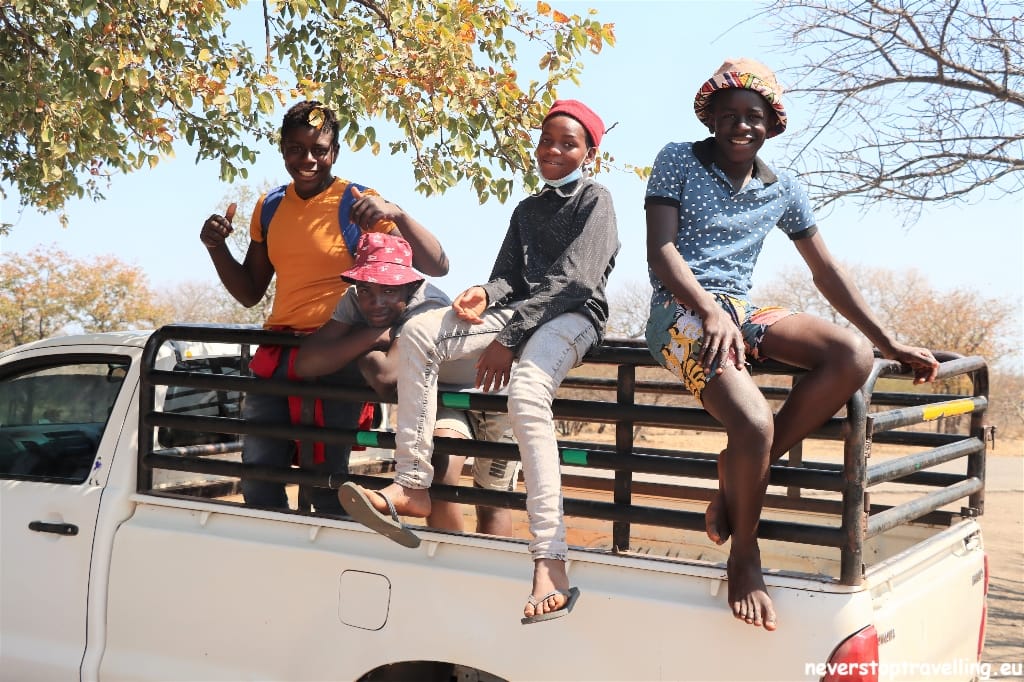 Een stop bij een klein Afrikaans dorpje maakt al snel dat iedereen nieuwsgierig op je af komt! Enkele snoepjes en geruststellende praatjes met elkaar maakt al snel dat er een leuke Afrikaanse fotoshoot ontstaat! Altijd met respect natuurlijk. Ook de locals maken graag, met hun eigen mobieltjes, foto’s van ons. Afrika op en top genieten!