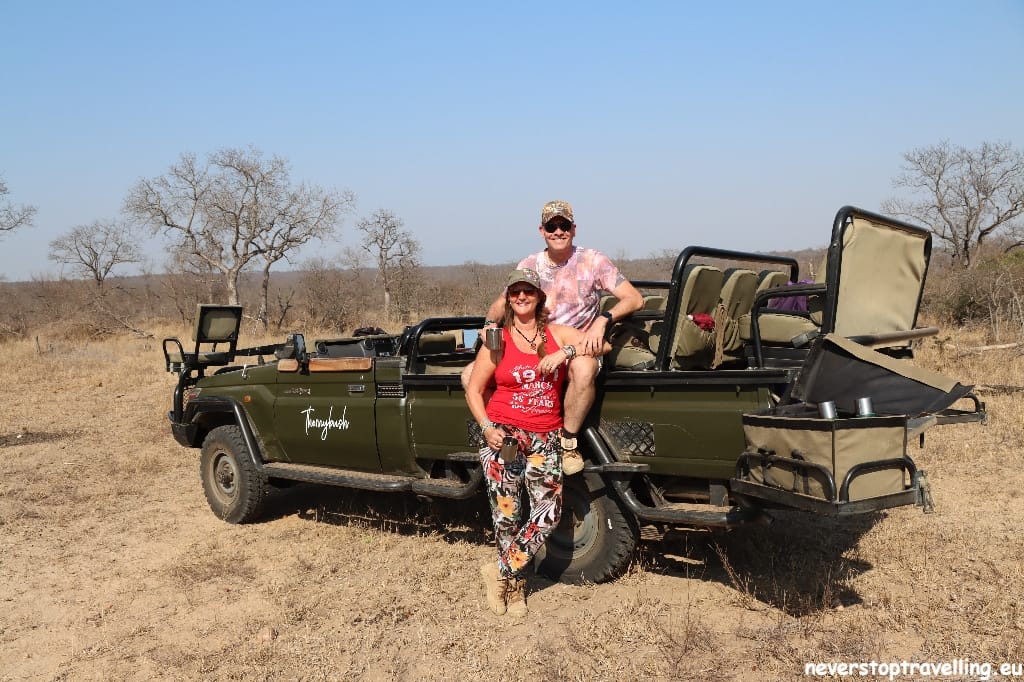 Het bezichtigen van het wild wordt dan ook uitsluitend met SUVās uitgevoerd met Engels sprekende rangers en worden vaak vergezeld door trackers. In tegenstelling tot het nationale deel van het Kruger National Park, hebben rangers de toestemming om de bestaande wegen te verlaten om zodoende nog dichter bij het wild te komen ā de ultieme Afrika-ervaring! Je kunt zelf optimaal genieten en de juiste beelden schieten zonder dat je op de weg en je stuur hoeft te letten. In de delen waar self-drive niet is toegestaan is het ook een stuk rustiger als er een groep leeuwen wordt gesport. Daarbij wordt er tijdens elke game-drive een koffie/thee in de morgen geschonken en een hapje/drankje tijdens de middag/avond drive, een bijzondere ervaring! Aansluitend met een grote schijnwerper terug naar de Lodge, ook de avonden brengen weer andere dieren op je pad. (Goede) fotografie is in het licht van de schijnwerpen wel een stuk lastigere